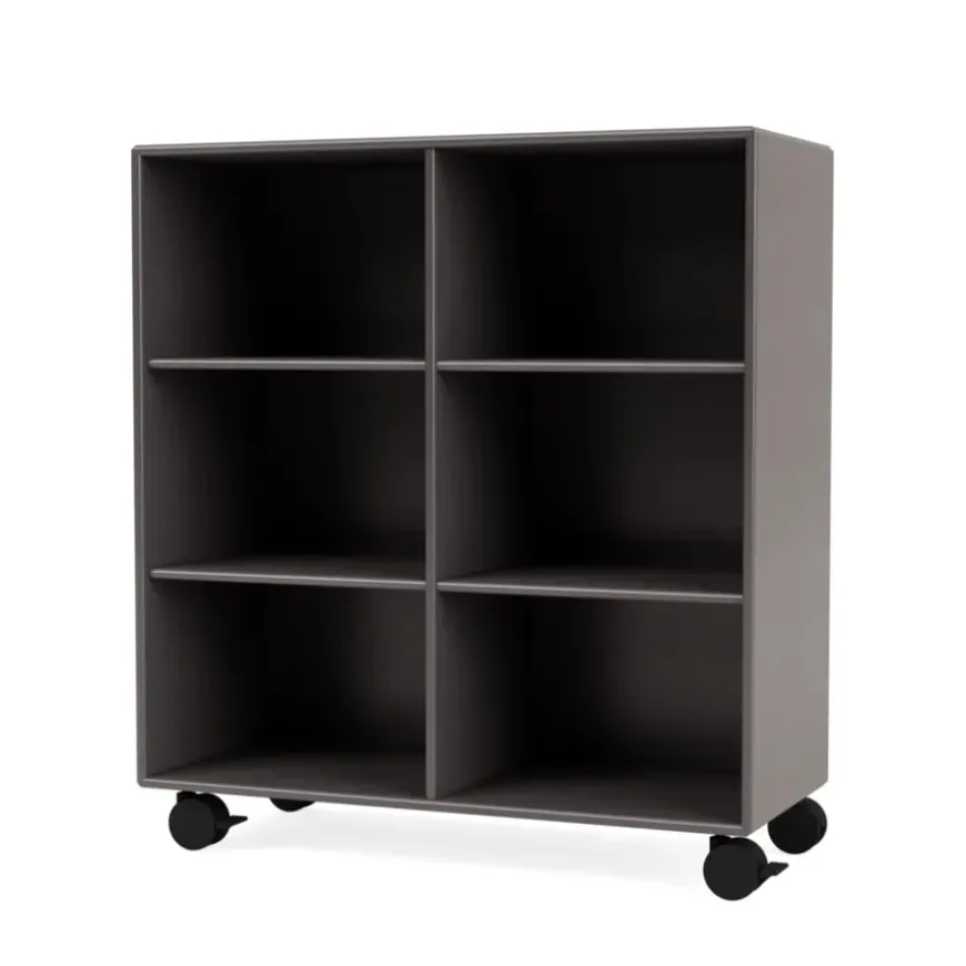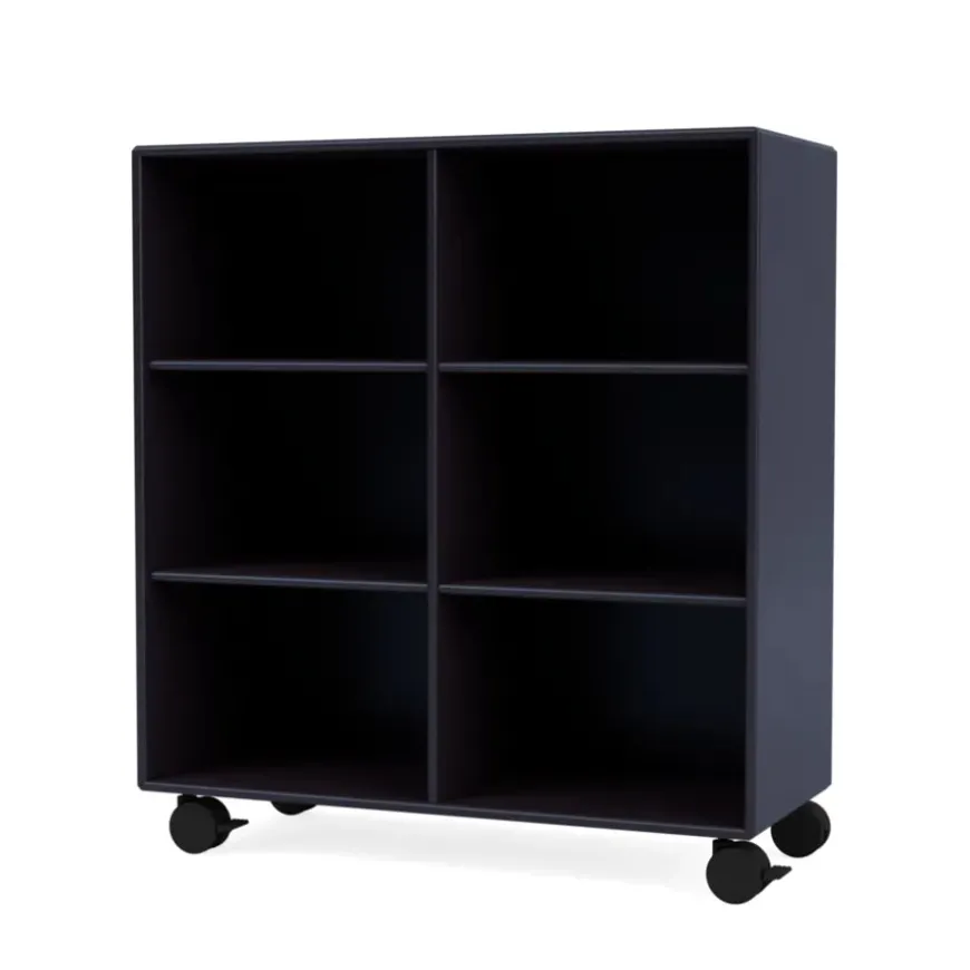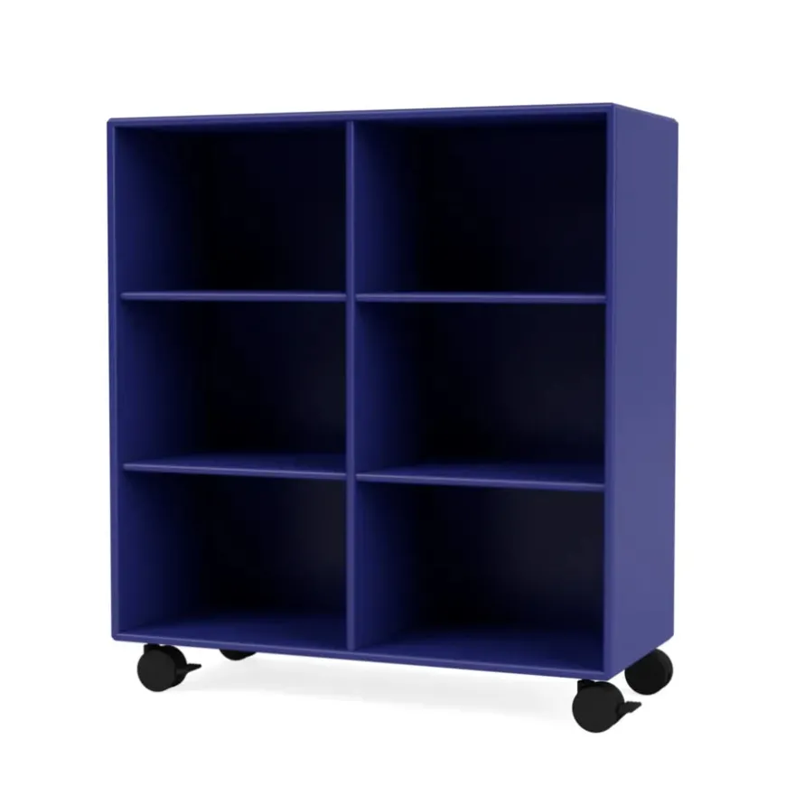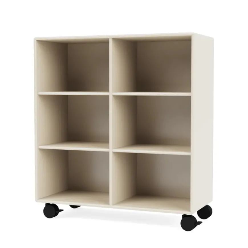 Reolen kan bestilles i alle Montanas 40 lakfarver med enten ophæng, sokkel, ben eller hjul.