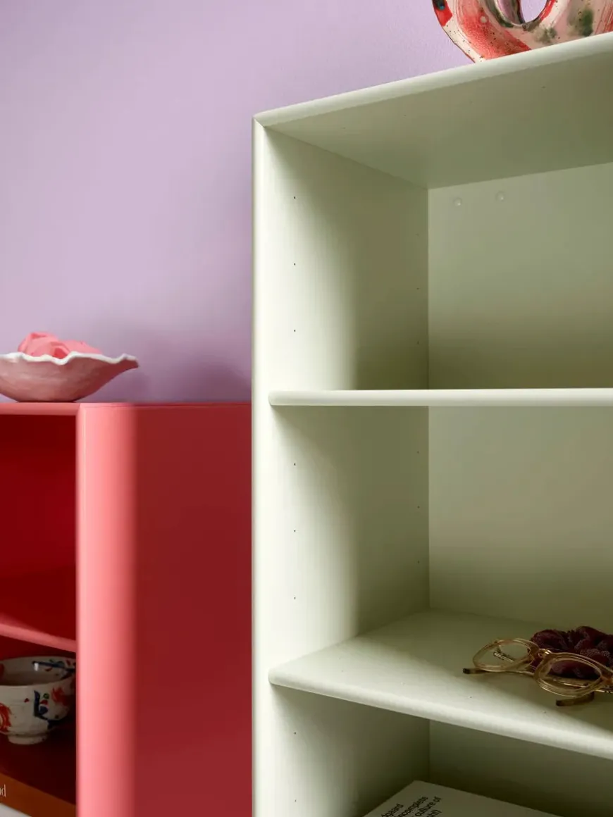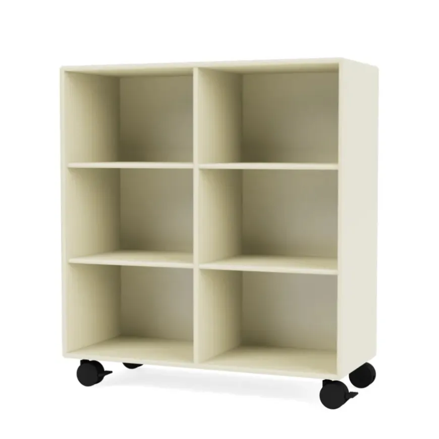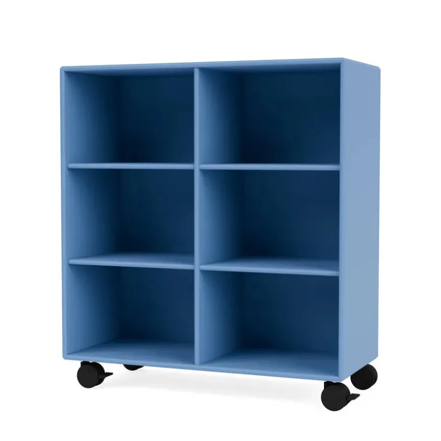 Reolen kan bestilles i alle Montanas 40 lakfarver med enten ophæng, sokkel, ben eller hjul.