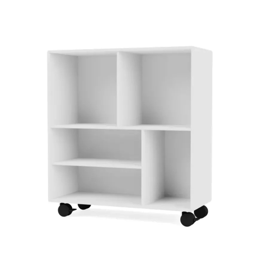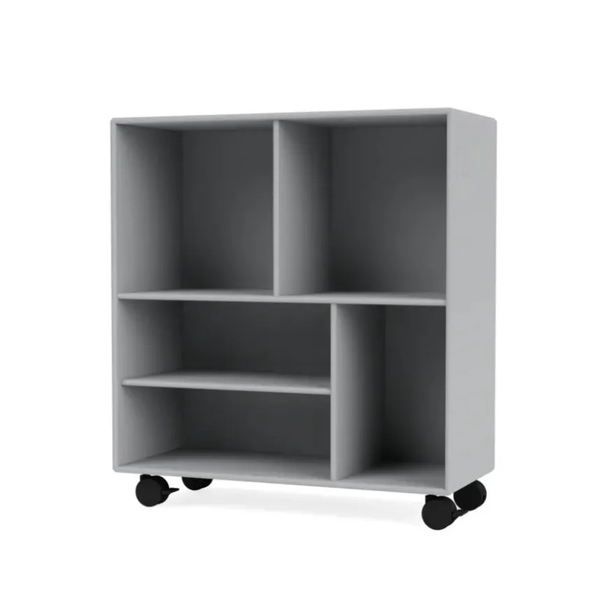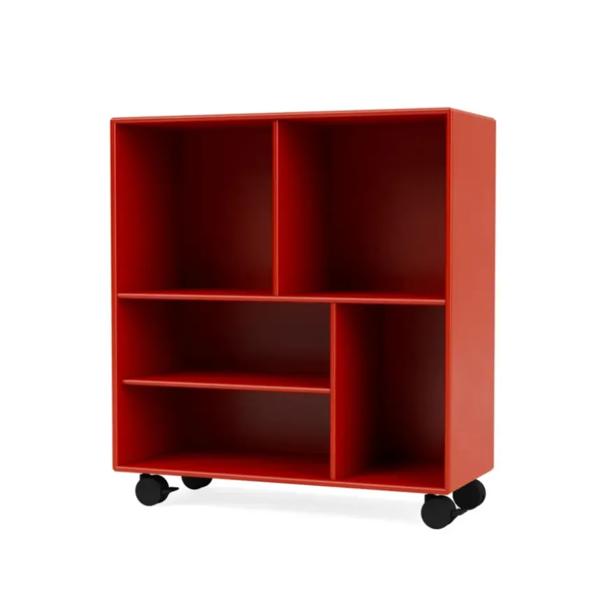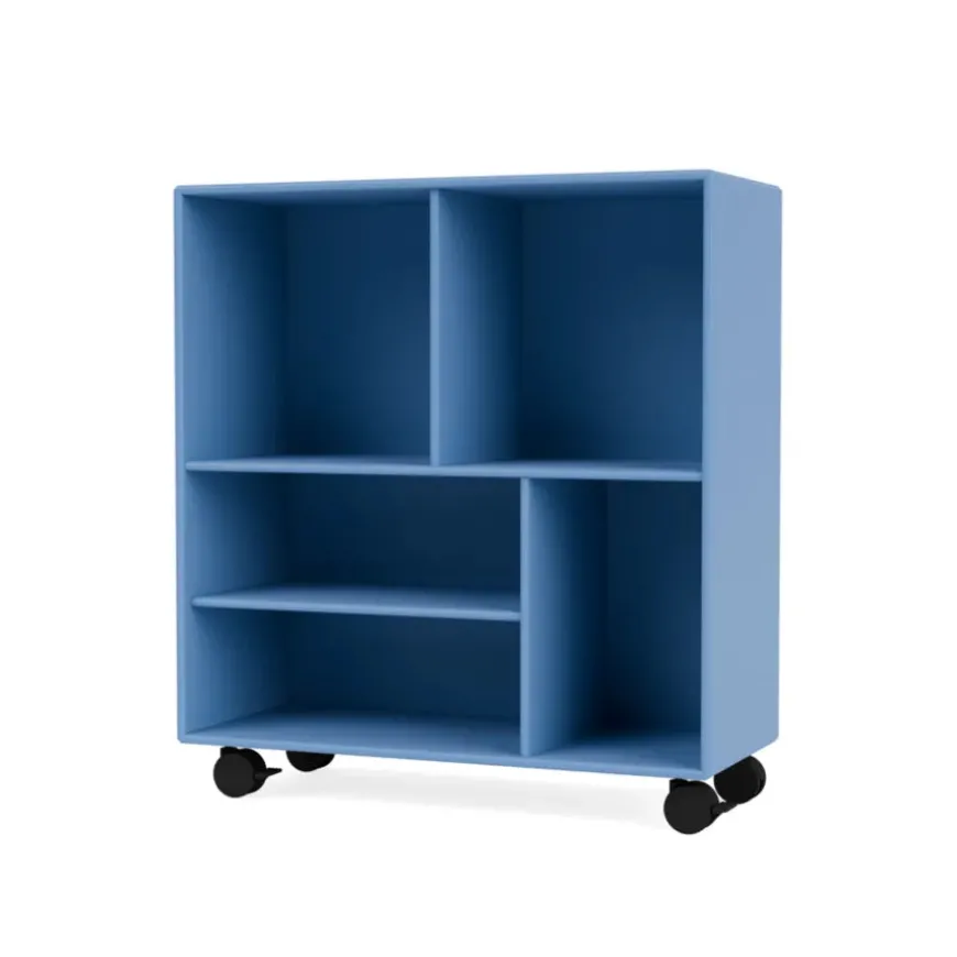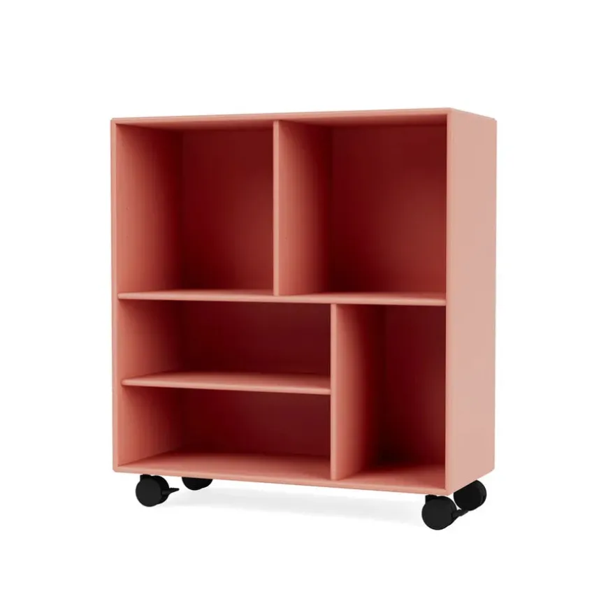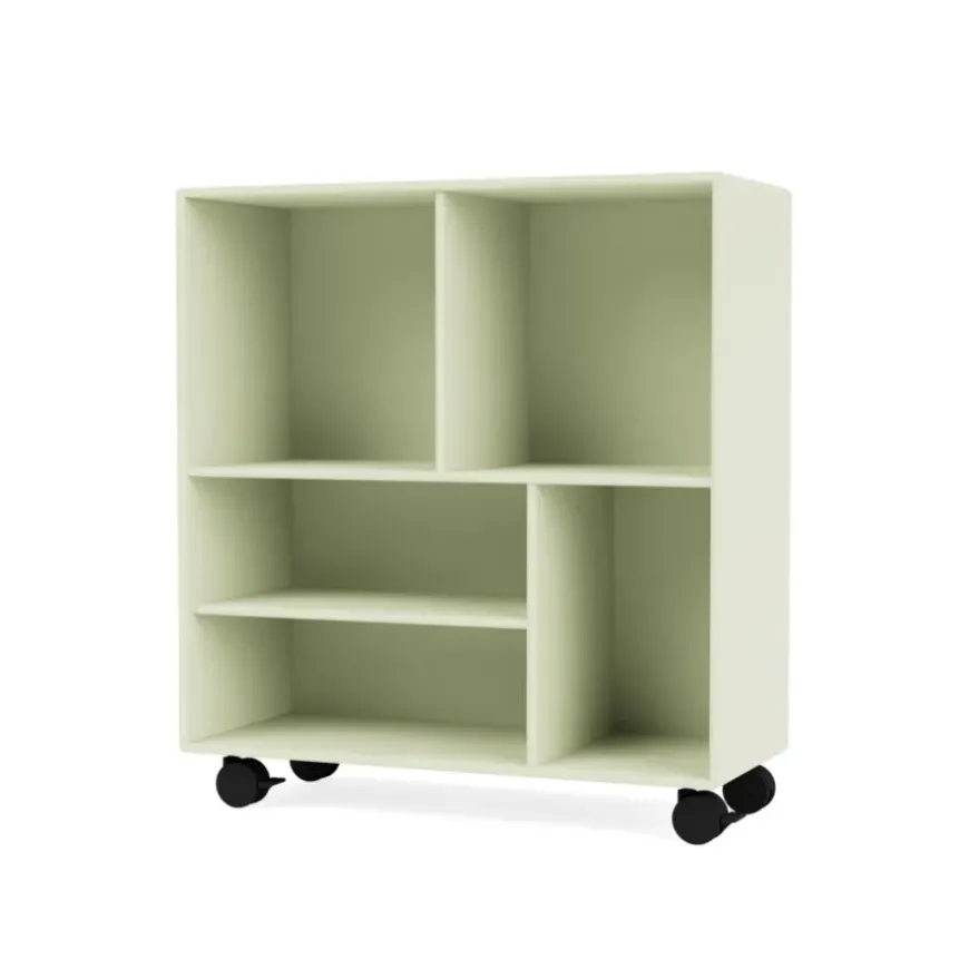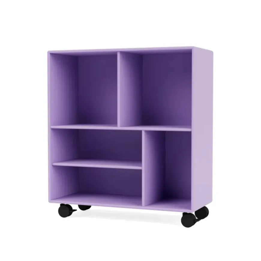 Reolen kan bestilles i alle Montanas 40 lakfarver med enten ophæng, sokkel, ben eller hjul.
