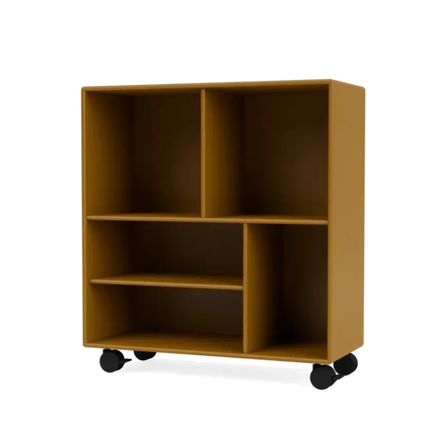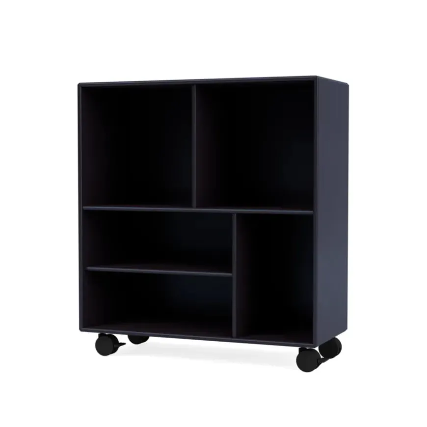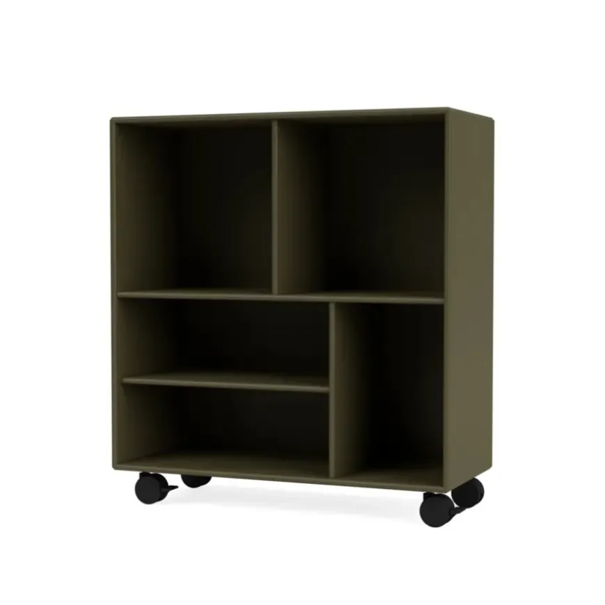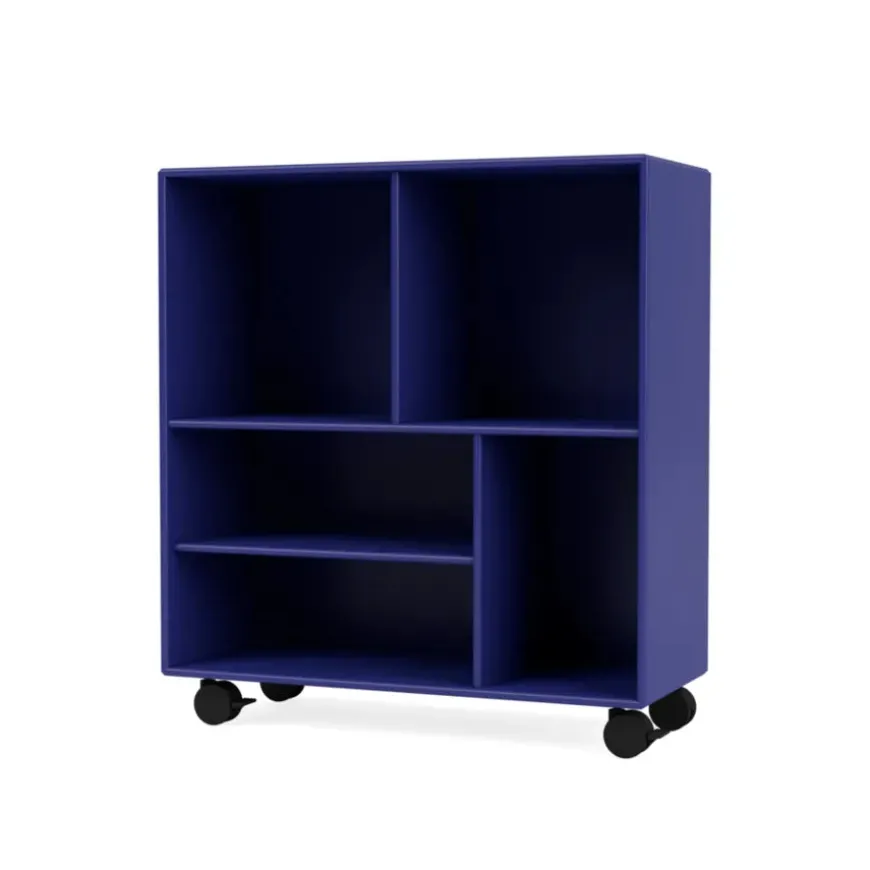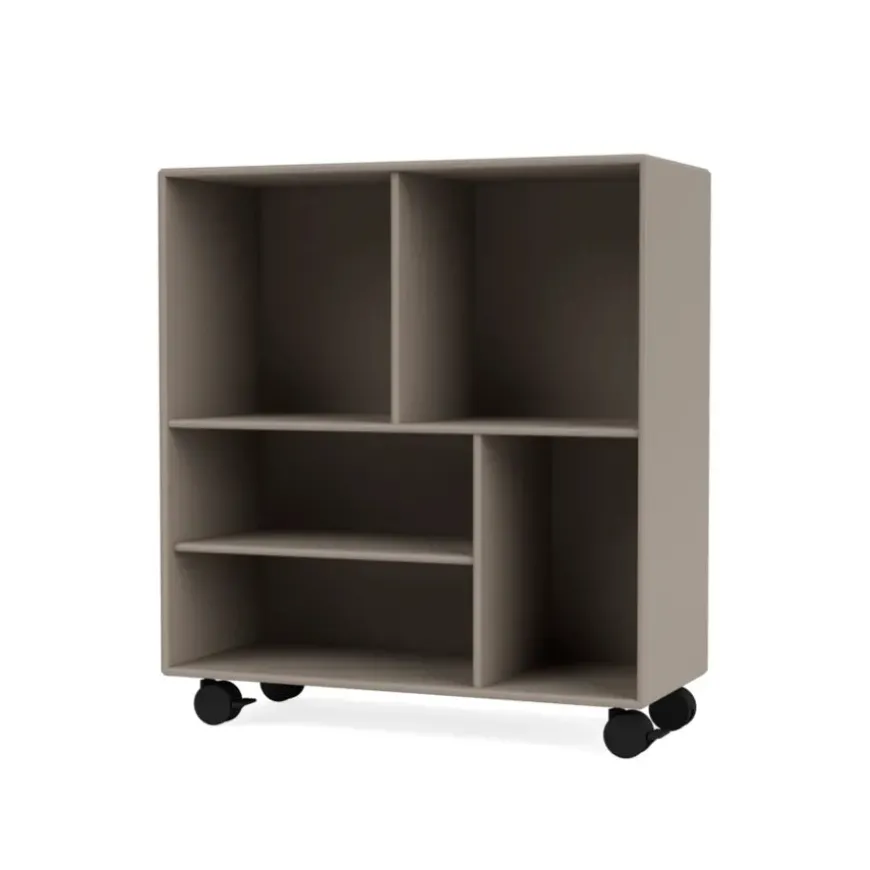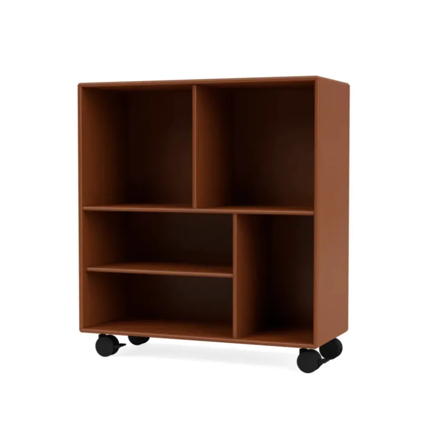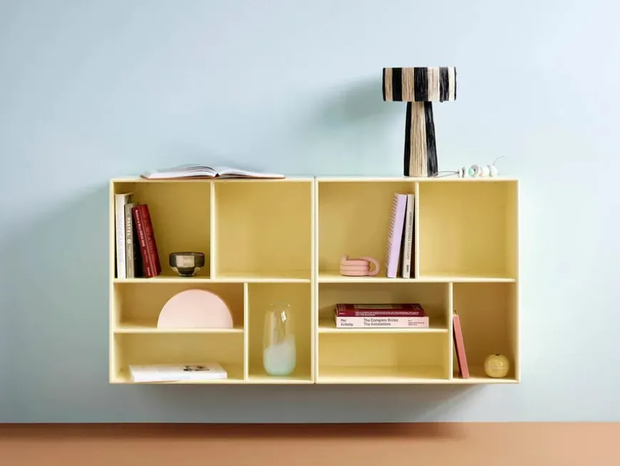 Reolen kan bestilles i alle Montanas 40 lakfarver med enten ophæng, sokkel, ben eller hjul.