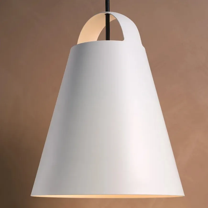 Above pendlen i hvid er designet af den danske designer Mads Odgård og fås i 4 forskellige størrelser. Above er lanceret i 2017 og kendes ved sit ekstremt enkle design. Above har et nedadrettet lys og et diskret opadrettet lys. Den flotte detalje med den åbne top øverst refererer til navnet, og skjuler lyskilden.