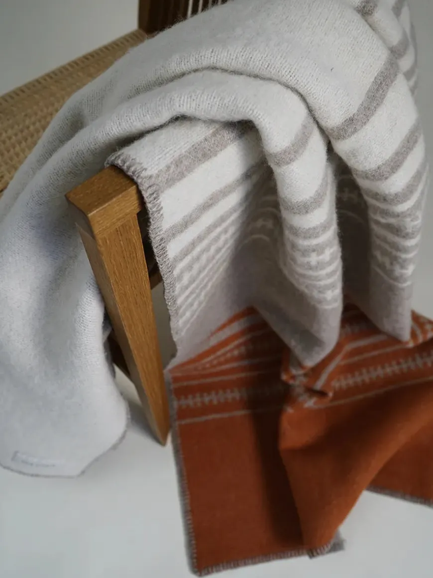 Aiyana no 01 plaid i creme/orange fra Hein Studio er smuk, tidløs og behagelig. Tæpperne fra Hein Studio er designet til at blive brugt og kan benyttes både inde og ude. Plaiden er i en tykt vævet, lækker uld.