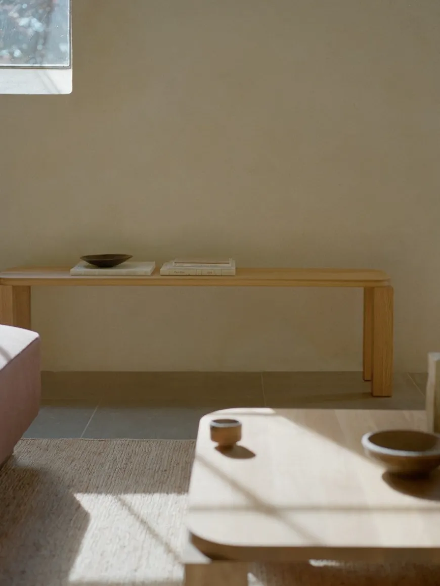 Atlas Bænk 100×32 er John Astburys moderne fortolkning af den klassiske post-og-overligger-arkitektur: runde, solide ben bærer en slank siddeflade i massiv eg. Resultatet er et roligt, skulpturelt udtryk med stor stabilitet uden visuel tyngde. Bænken passer perfekt ved spisebordet, i entréen eller for enden af sengen og fås i natur eller røget eg, så træets åretegning får lov at stå frem. Med sine kompakte mål (L100 × D32 × H46 cm) giver Atlas bænken fleksible siddepladser og en varm, taktil materialitet, der klæder ethvert hjem.