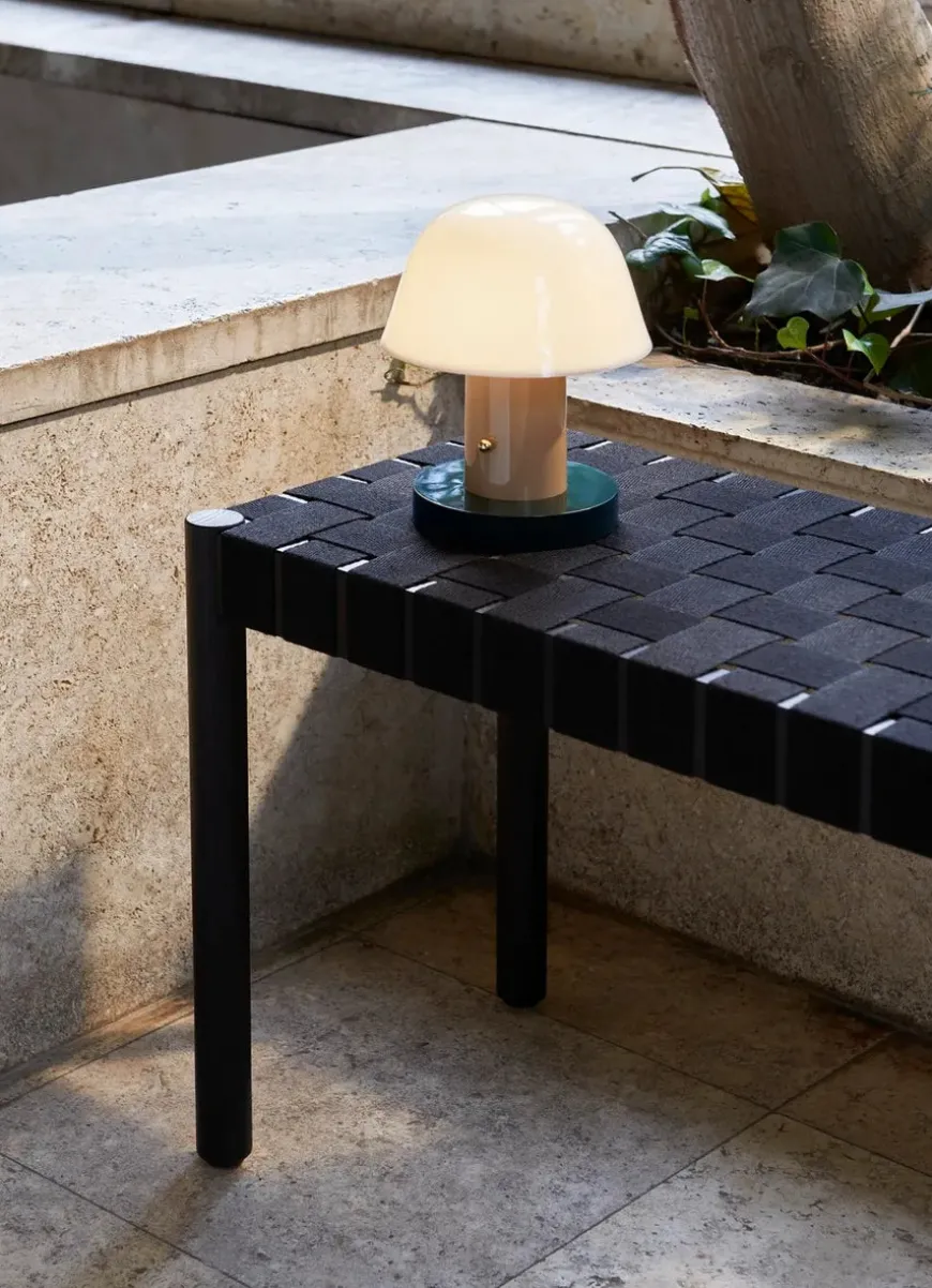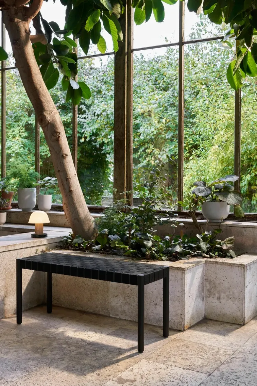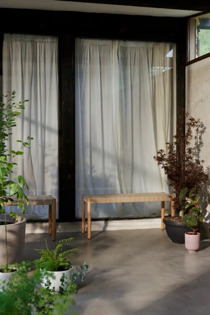 Betty bænk TK4 fra &Tradition er opkaldt efter Betty Nansen-teatret i København og er lavet af bånd, der er håndlavet af naturlige linnedfibre. Rammen er af massiv egetræ og fås i fire moderne kombinationer: sort/natur, tusmørke/natur, rødbrun/natur og sort/sort.