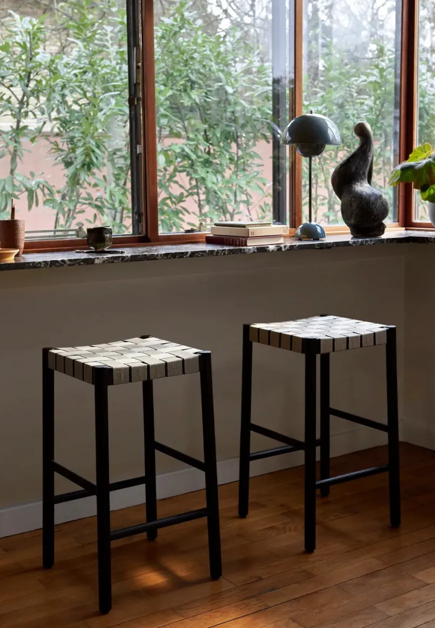 Betty barstol TK8 fra &Tradition er opkaldt efter Betty Nansen-teatret i København og er lavet af lakeret eg. Sædet er lavet af naturlige linnedfibre og vævet i hånden, som giver en blød, polstret base.