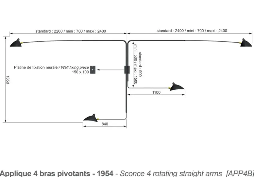 Big Wall Lamp w/4 Rotating Straight Arms af Serge Mouille