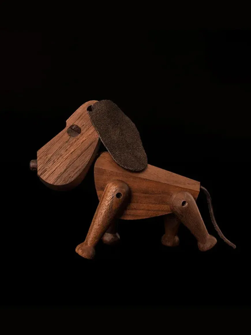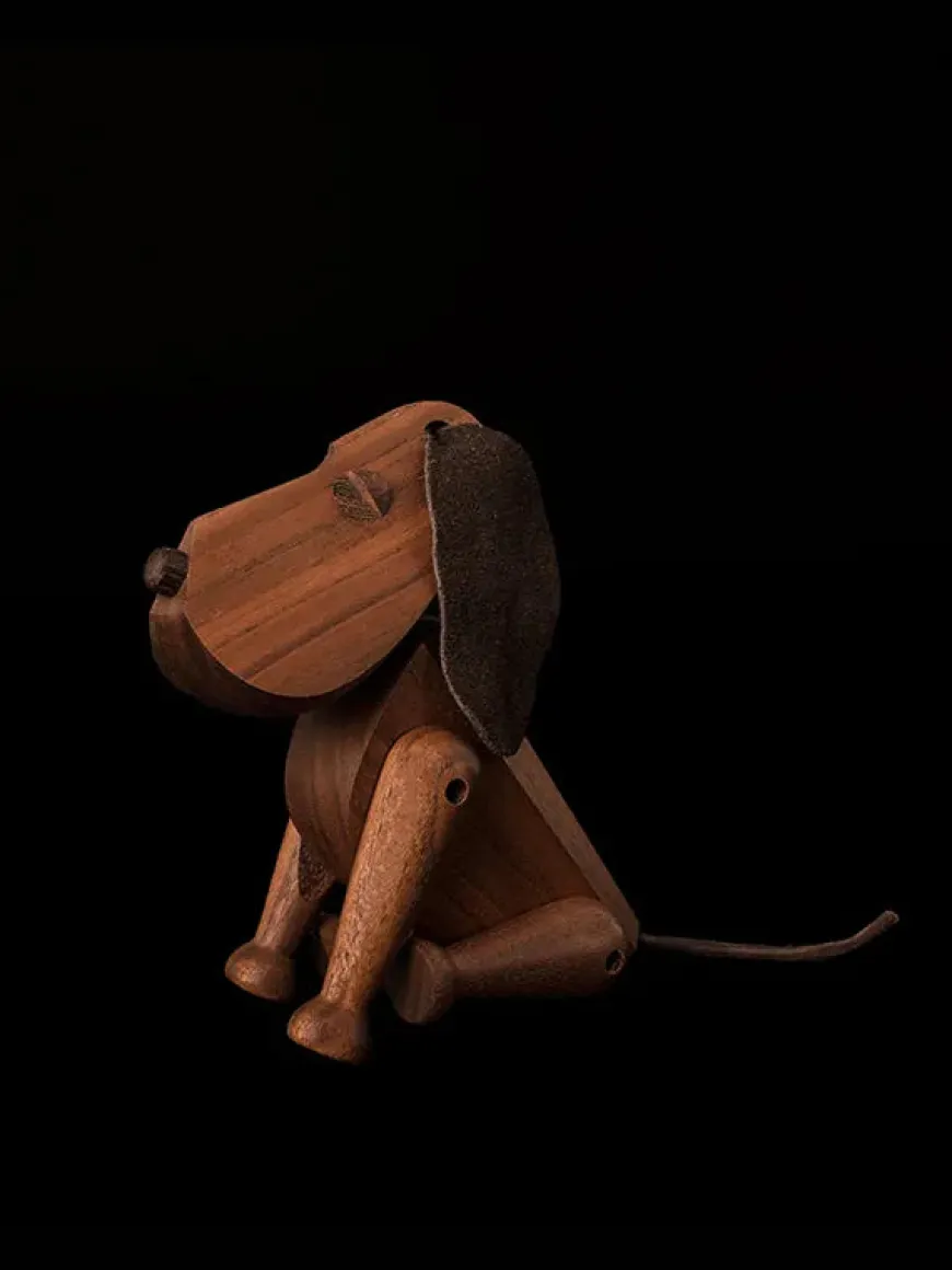 Bobby hund fra Archtectmade i valnød. Hunden en tidløst designklassiker, som er tegnet af Hans Bølling i 1957. Træfiguren er håndlavet.