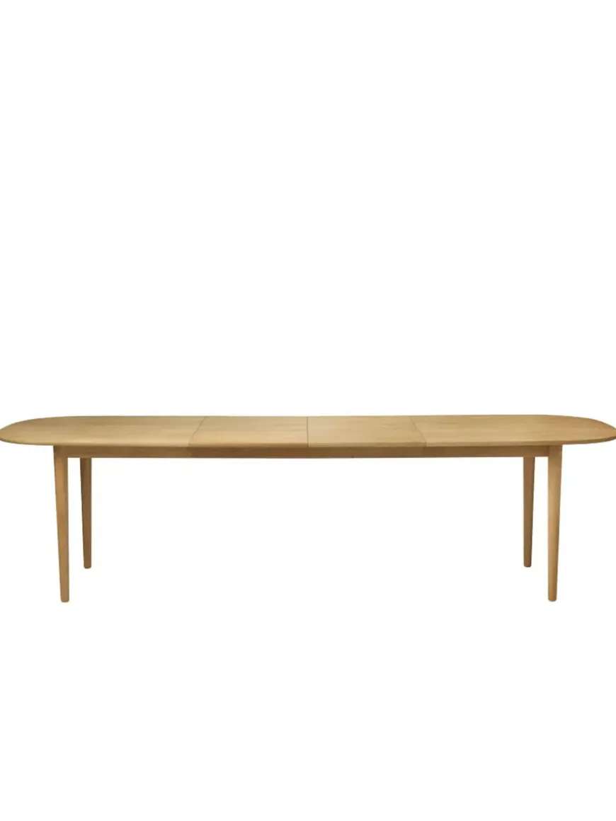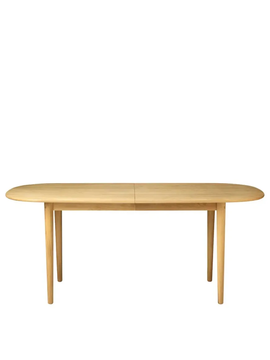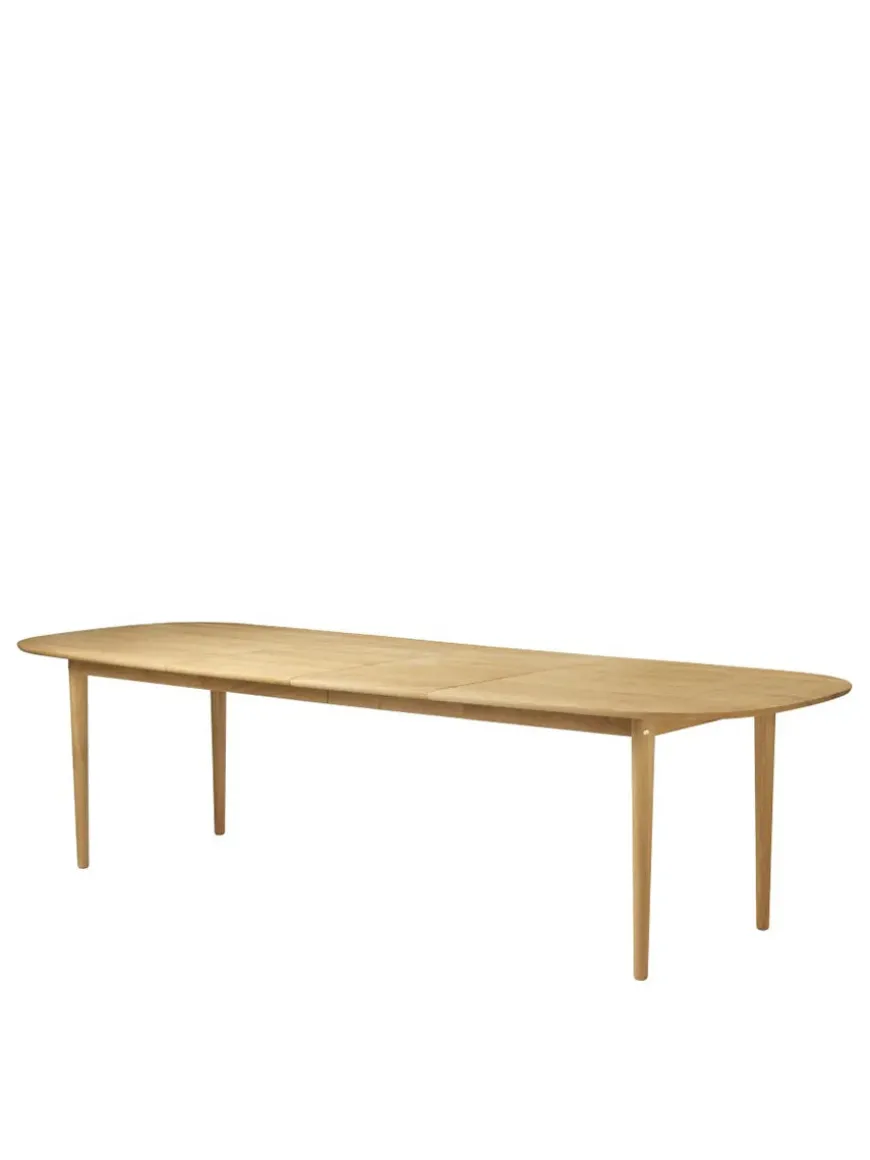 Klassisk, enkelt og tidløst spisebord fra FDB Møbler. C63E bordet er designet af den skandinaviske designduo, Unit10. Spisebordet kommer med to tillægsplader i massivt træ, der forlænger bordet med op til 1 meter. Hver af de to tillægsplader tilføjer 50 cm til bordets længde.