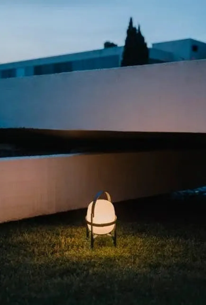 En lille og trådløs bordlampe fra Santa & Cole. Cestita Alubat lampen kan oplades og er dæmpbar i tre trin. Oplader inkluderet og lampen har en genopladningstid på ca. 6 timer. Lampen kan både bruges indendørs og udendørs.