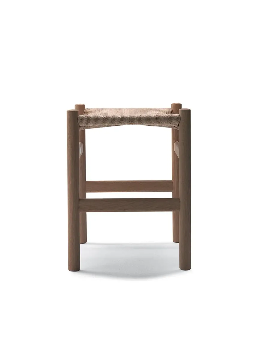 CH53 skamlen fra Carl Hansen & Søn. Hans J. Wegner tegnede denne smukke skammel i 1966 til CH44 stolen. Skamlens enkle og elegante form med stel i massivt træ og sæde i sort eller naturfarvet håndflettet papirgarn passer perfekt til CH44 loungestolen, men er også oplagt alene til entréen eller soveværelset.