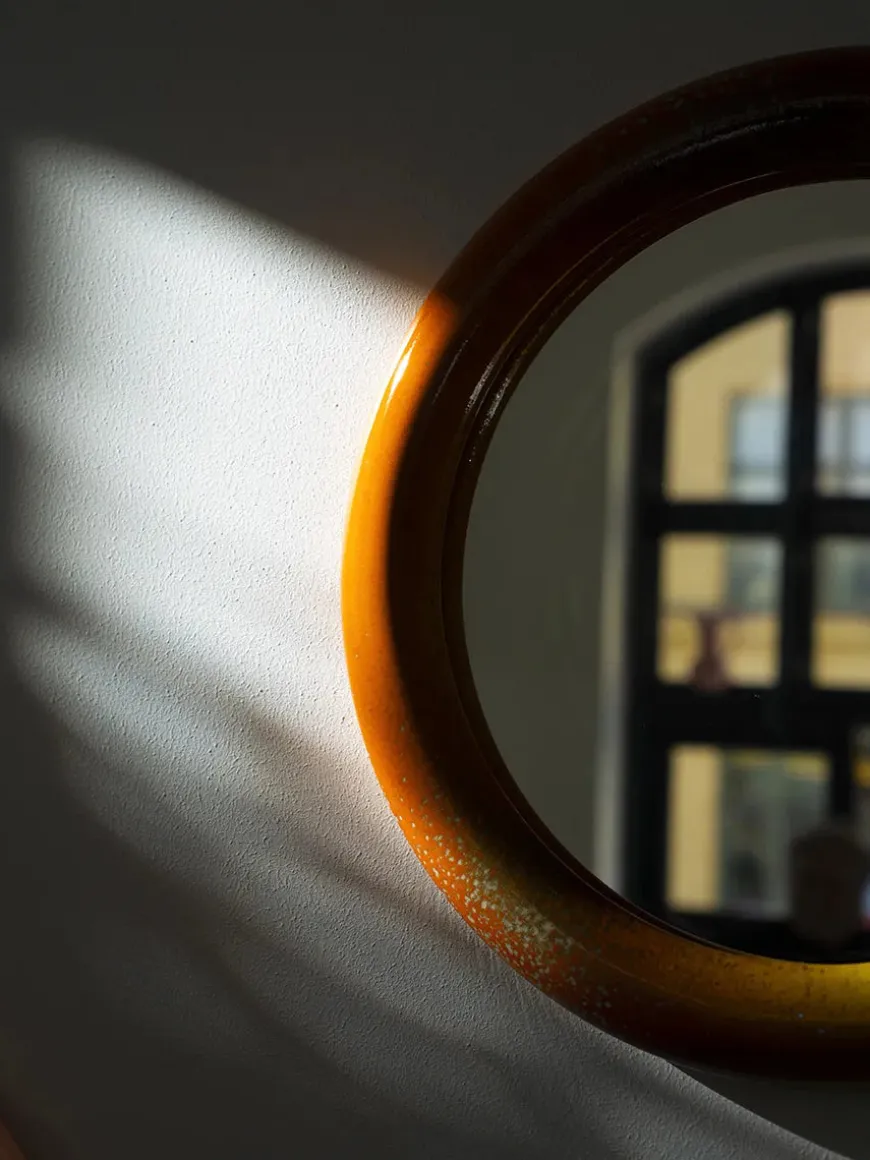 Duplum spejlet er et af Nicholai Wiig-Hansens seneste designs for raawii. Duplum spejlet er cirkulært og med en ramme i keramik. Det runde spejl har et bubblegum-agtigt udseende og er sjovt at bringe ind i boligen, da både farver og design spiller enormt godt sammen. Spejlet med lakering i “blue ink” er blankt.