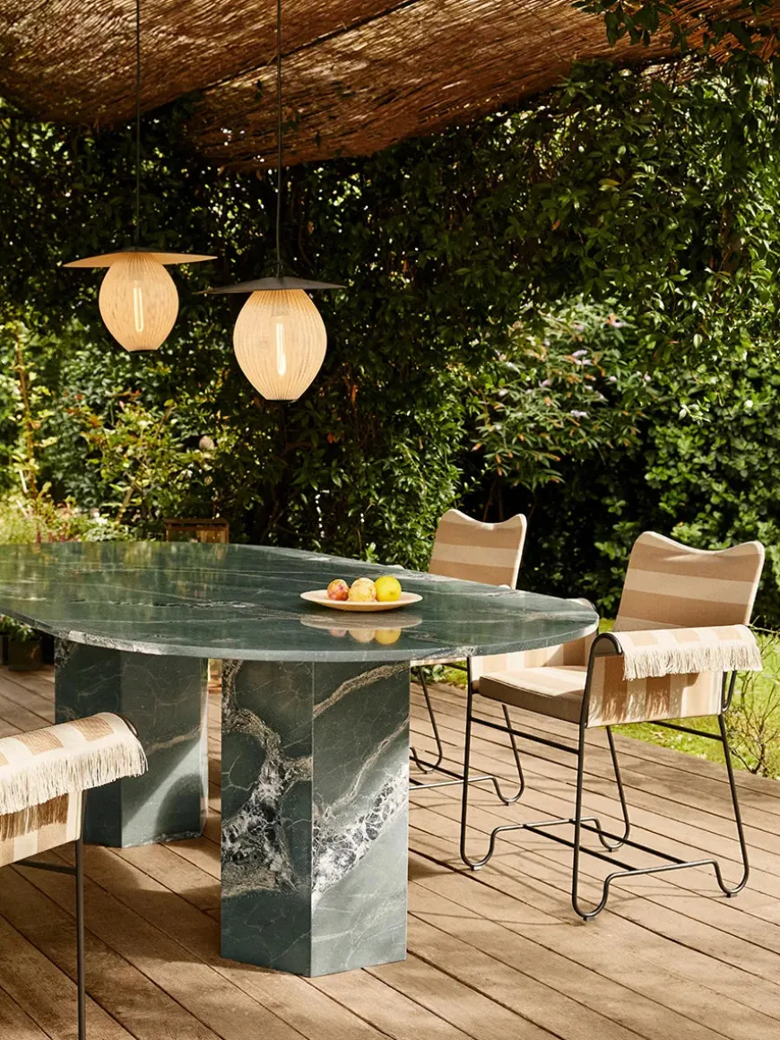 Epic Outdoor Dining Table fra GUBI er et skulpturelt møbel designet af designduoen GamFratesi. Inspirationen bag designet kommer fra antikkens græske og romerske arkitektur, hvilket afspejles i bordets monolitiske silhuet og materialevalg. Bordet er fremstillet af kvartsit, en naturlig sten kendt for sin exceptionelle holdbarhed og modstandsdygtighed over for vand og ekstreme temperaturer, hvilket gør det ideelt til udendørs brug. Den anvendte kvartsit er kendetegnet ved sin dybe grønne farve med sorte årer, grå hvirvler og spredte hvide krystalklynger, hvilket giver hvert bord et unikt udtryk. Leveringsoplysninger: Grundet størrelse og vægt kan denne vare kun leveres til kantsten eller levering med indbæring i stueplan uden trapper. For levering med indbæring i etageejendom eller hvor adgangsforholdene kræver det, starter fragten på 2.500 kr. Kontakt os inden levering på telefon, email eller chat for tilbud på fragten i etageejendom. Design: GamFratesi Mål: Ø 130 x H 74 cm Vægt: 130 kg Materiale: Botanic Green Quartzite