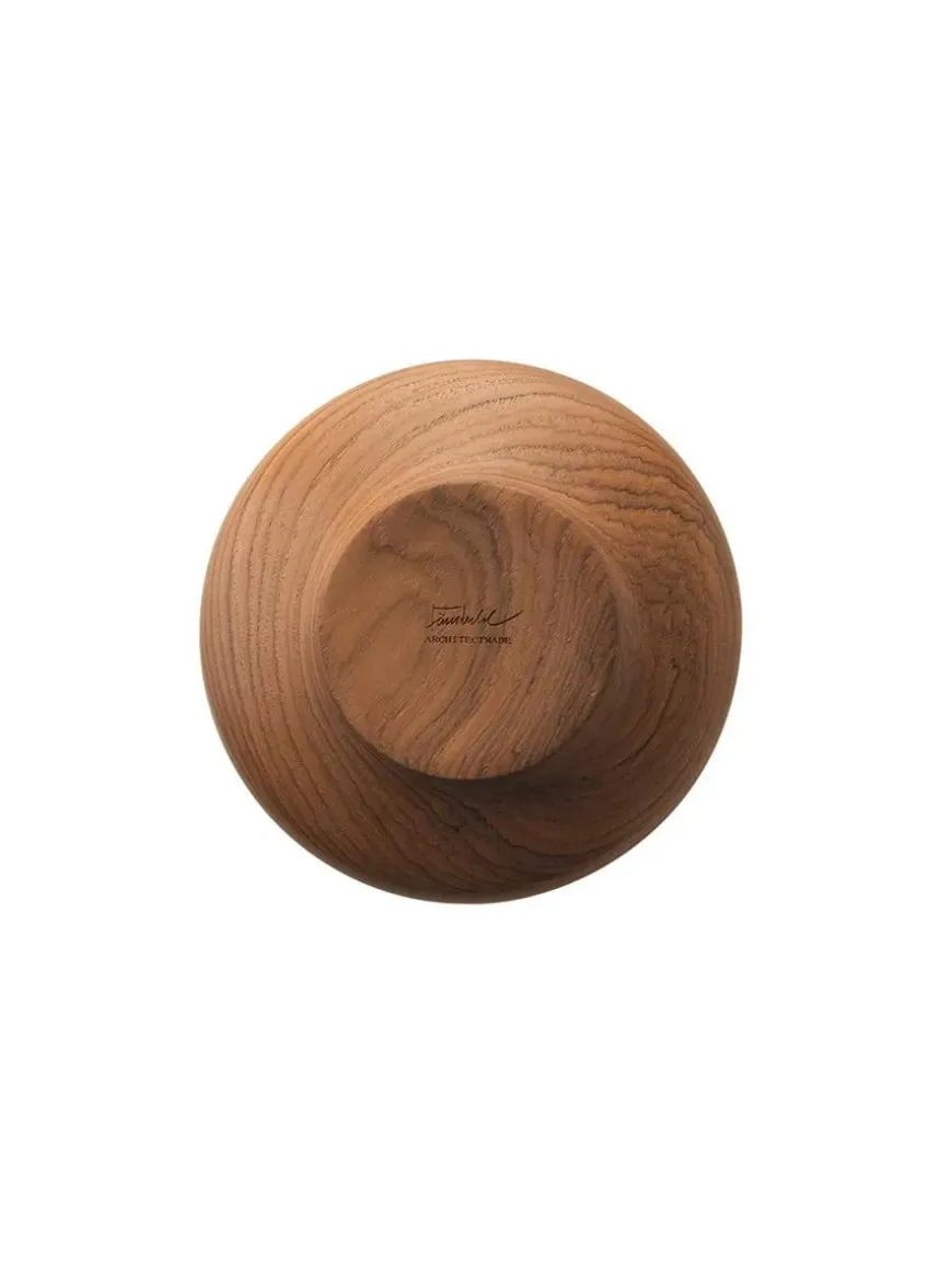 FORMER I BALANCE FJ Bowl er den mindste skål fra den eftertragtede serie af teaktræsskåle, som Finn Juhl designede i 1951. Den har den karakteristiske blanding af organiske former og balance mellem træ, form og geometriske mål, der gjorde Juhl berømt. Ved at skabe kontrast mellem det bølgende mønster i teaktræet og skålens kant bruger Juhl designet til at fremhæve materialets naturlige egenskaber. Afhængigt af hvilken vinkel du ser den fra, kan skålen skifte form, og den får dermed et helt andet udtryk, hver gang du drejer den en smule.