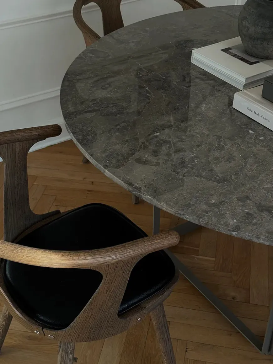 Special Edition Jacobsen Plus har i samarbejde med New Works designet en ny stelfarve til det populære og smukke Florence spisebord. Florence spisebordet fra New Works er et rundt spisebord med bordplade i marmor. Marmorbordpladen har en masse struktur, som skaber liv og blikfang i både spisestuen eller mødelokalet. Den tunge marmorbordplade ligger på et massivt jernstel, som får bordet til syne lettere og mere luftigt. Gris du Marais bordpladen står super flot til stellet i beige grey og fås kun hos Jacobsen Plus.