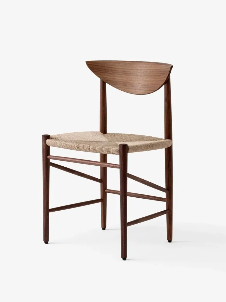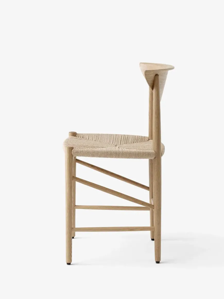 Den ikoniske Drawn HM3 fra &Tradition bringer varme og stoflighed til spiseområdet. Tegnet i 1956 af Hvidt og Mølgaard og genintroduceret med samme respekt for håndværket, forener stolen massivt træ, formpresset ryglæn og et håndvævet sæde i naturpapirledning. De bløde kurver og den lune papirflet giver en indbydende komfort der holder til hverdagsbrug og lange middage. HM3 er den rene spisebordsstol i serien uden armlæn med et let og ærligt udtryk der matcher både moderne og klassiske interiører. Vælg mellem olieret eg, olieret valnød eller sortlakeret eg og tilføj eventuelt den skræddersyede læderpude for ekstra blødhed. Materialerne er nøje udvalgt og udførelsen præcis så stolen patinerer smukt og får karakter over tid.