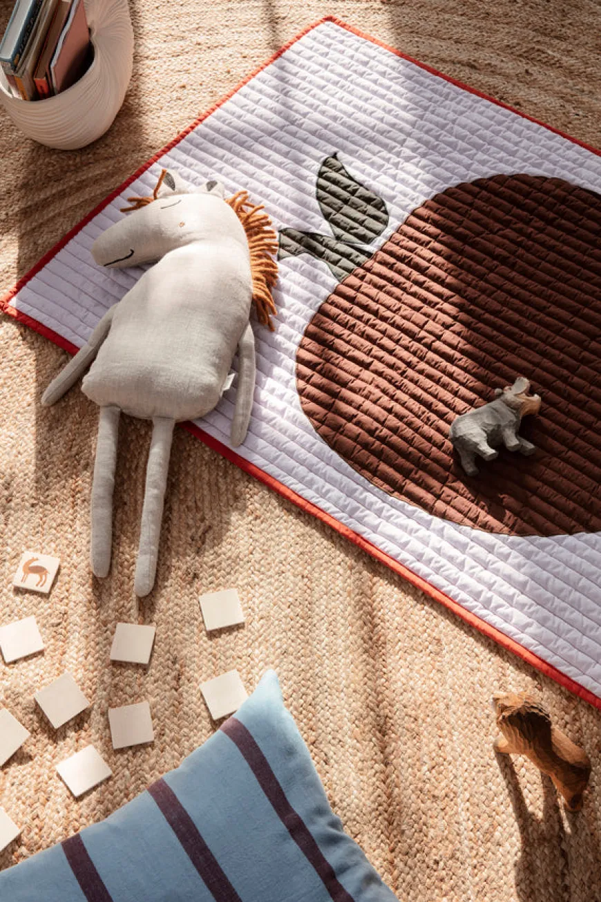 Skøn pude eller bamse fra Ferm Living. Hesten har en manke af flotte frynser, og fås i to forskellige farver. Lad hesten flytte ind på børneværelset og skab hygge.