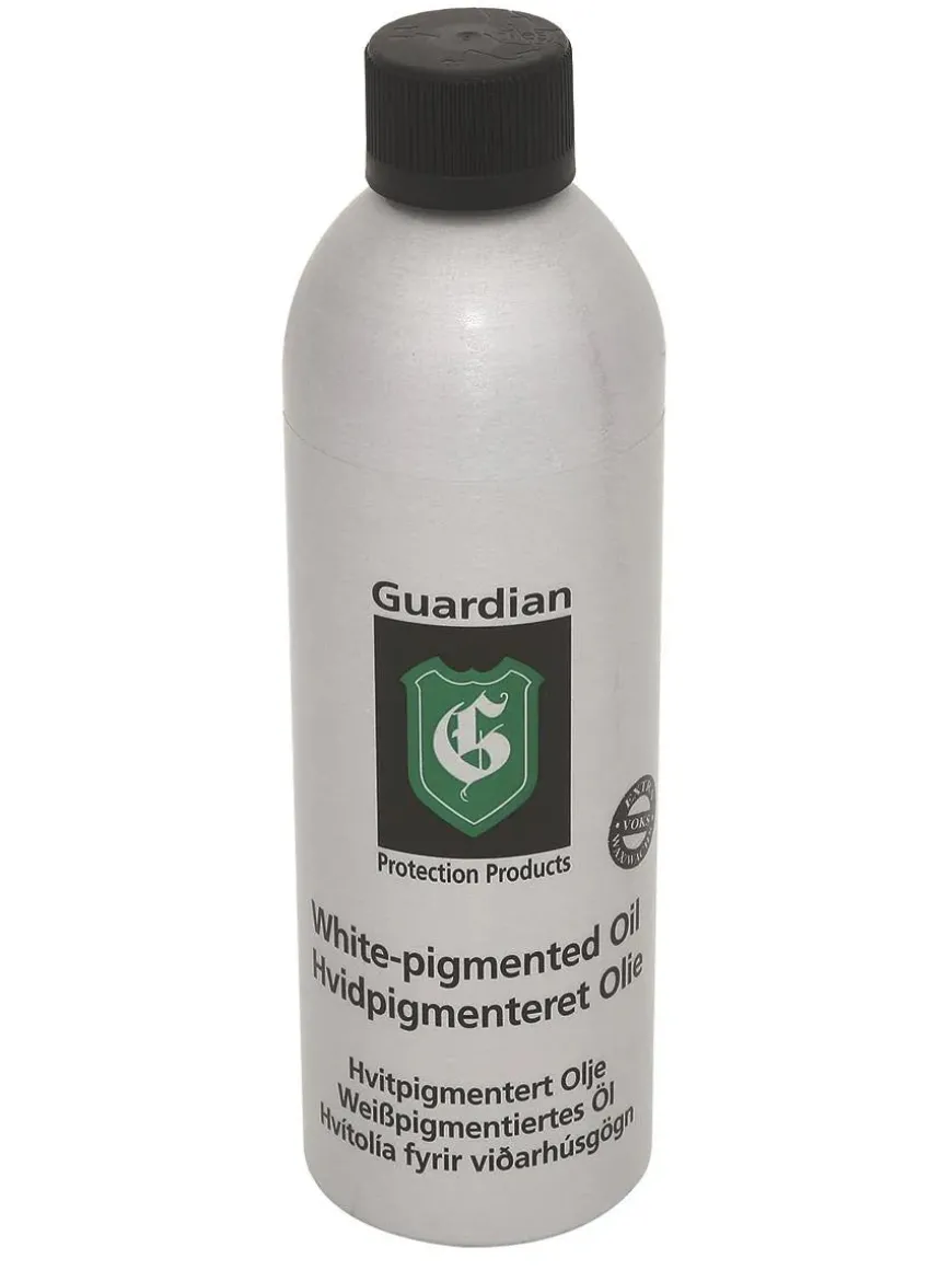 Guardian Hvidpigmenteret Olie anvendes til oliering af ubehandlet træ, hvor der ønskes et hvidt pigment eller til pleje af i forvejen hvidpigmenteret olieret træ. Olien indeholder ingen opløsningsmidler og er baseret på de fineste og reneste olier, virker vandafvisende og beskytter træet mod udtørring. Guardian Hvidpigmenteret Olie er testet af Teknologisk Institut og tildelt ”Indeklimamærket”.