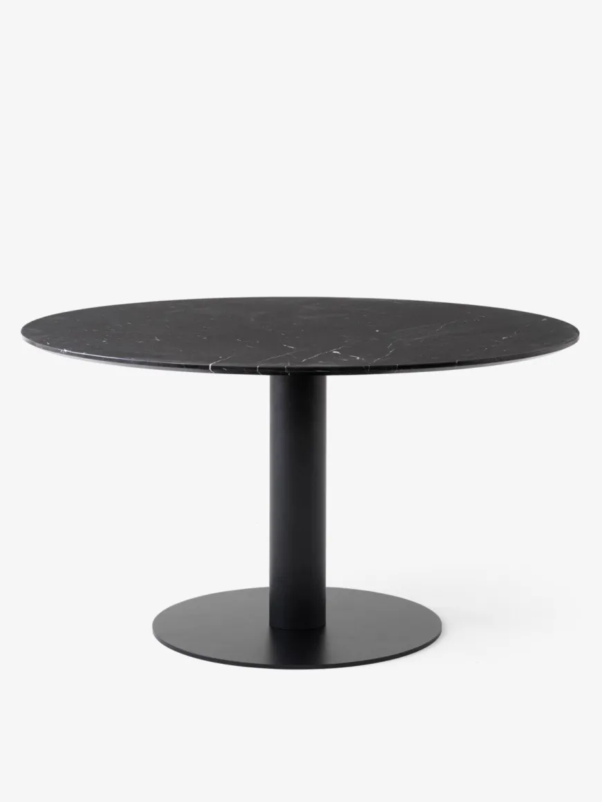 Med en diameter på Ø150 cm giver bordet generøs plads uden at virke dominerende, og den standardiserede højde på 73 cm gør det komfortabelt til daglig brug. Hver marmortop er et naturprodukt med sine egne årer og farvespil, hvilket gør hvert bord helt unikt.
