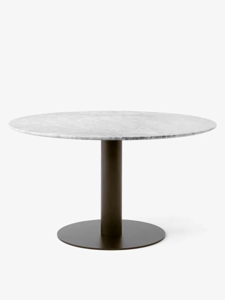 Stellet i bronzed pulverlakeret stål giver bordet et eksklusivt og raffineret udtryk, der tilfører varme og karakter til indretningen. Den enkle centralsøjle fremhæver bordpladens naturlige skønhed og sikrer samtidig optimal benplads for alle omkring bordet.