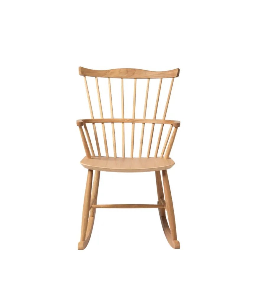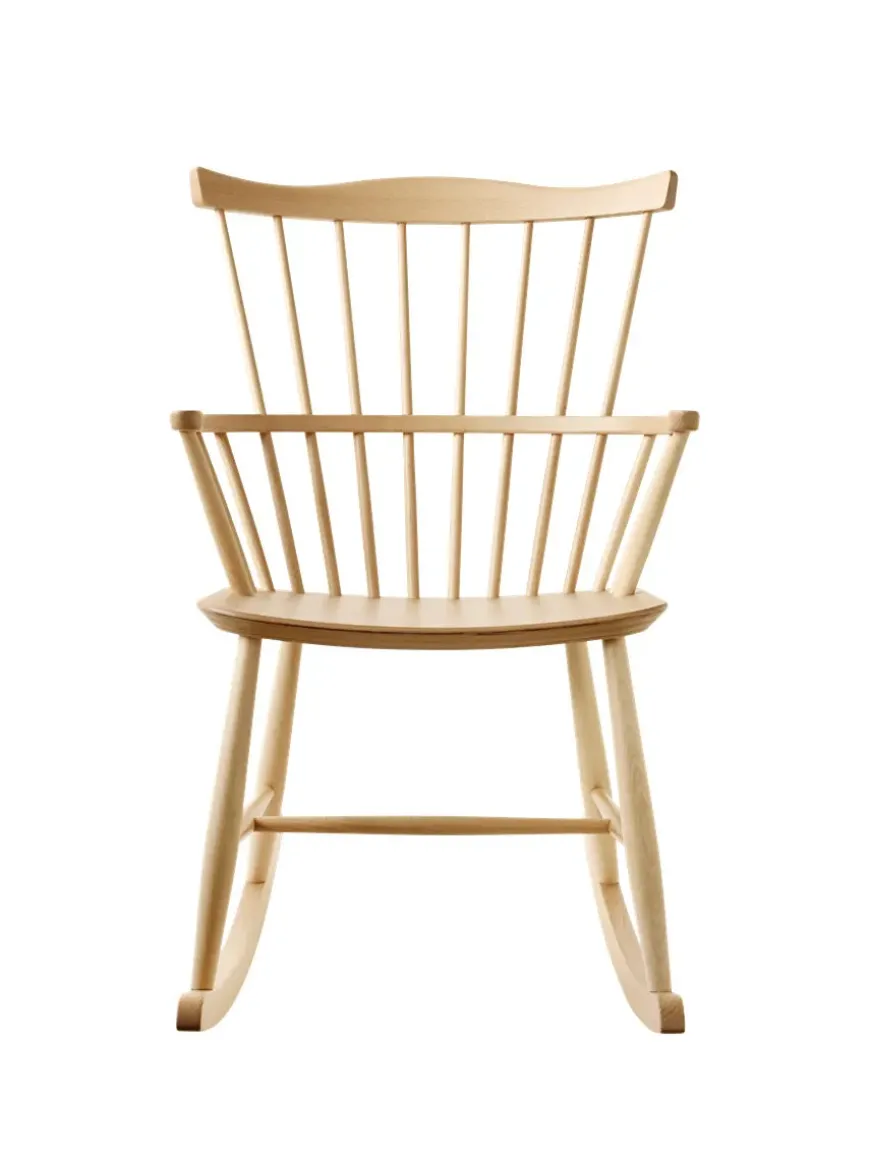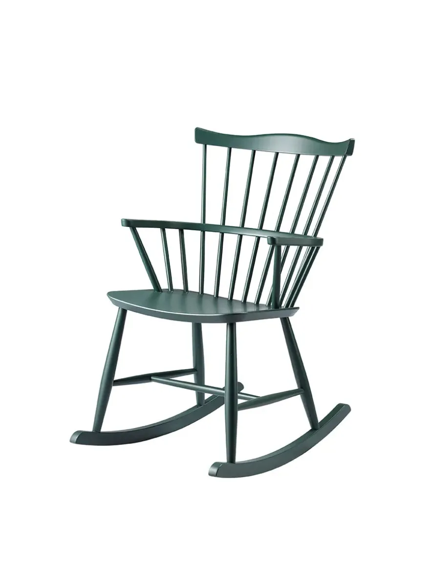 J52G gyngestolen fra FDB Møbler er designet af Børge Mogensen og indbyder til ren afslapning. FDB gyngestolen har et sæde af formpresset bøgetræ samt et understel af massiv bøg. Det benyttede træ laves i flere farver og er FSC-certificeret fra europæiske skove.