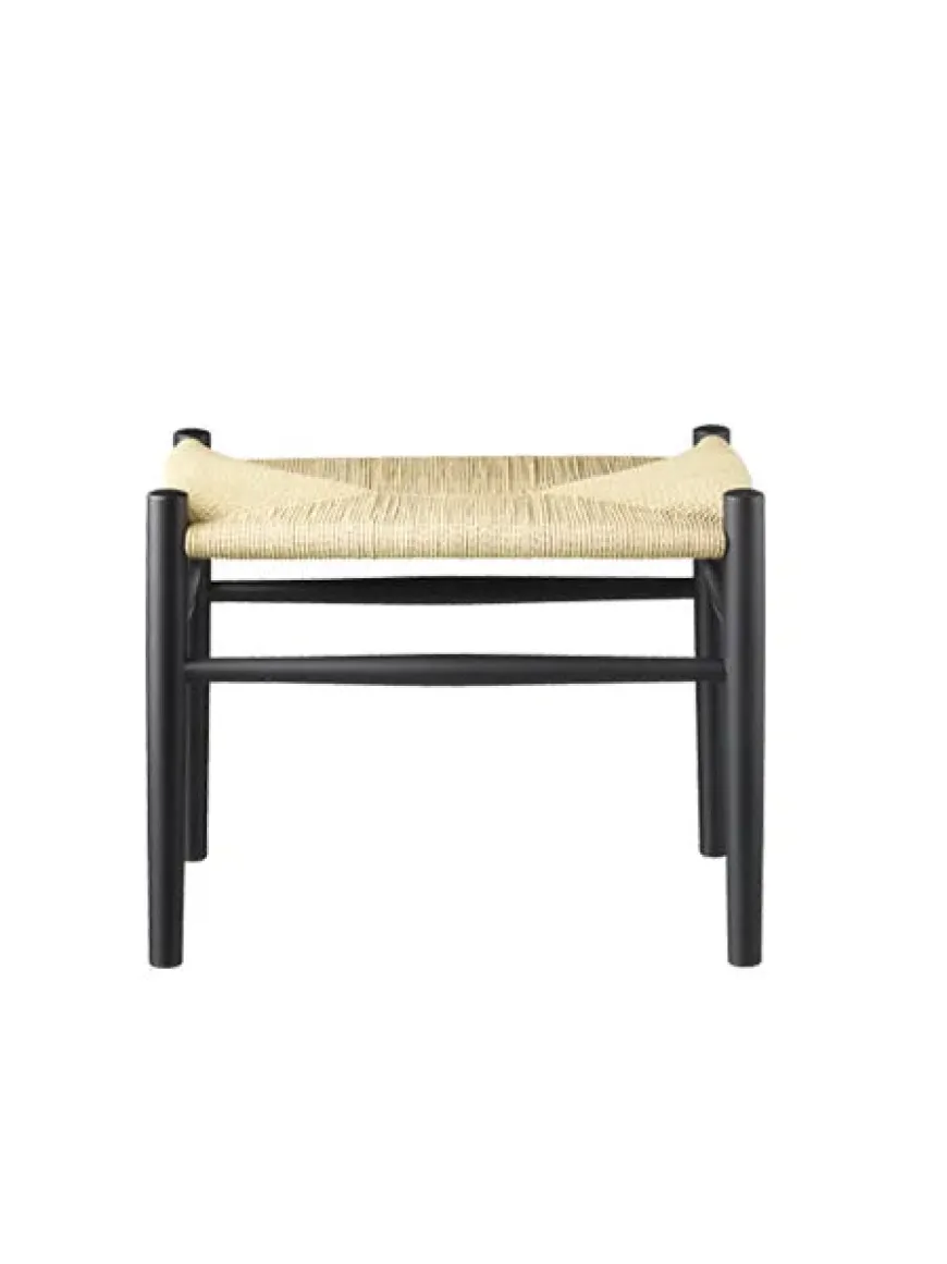 J83 skamlen er lavet i massiv eg eller malet bøgetræ med fletsæde.