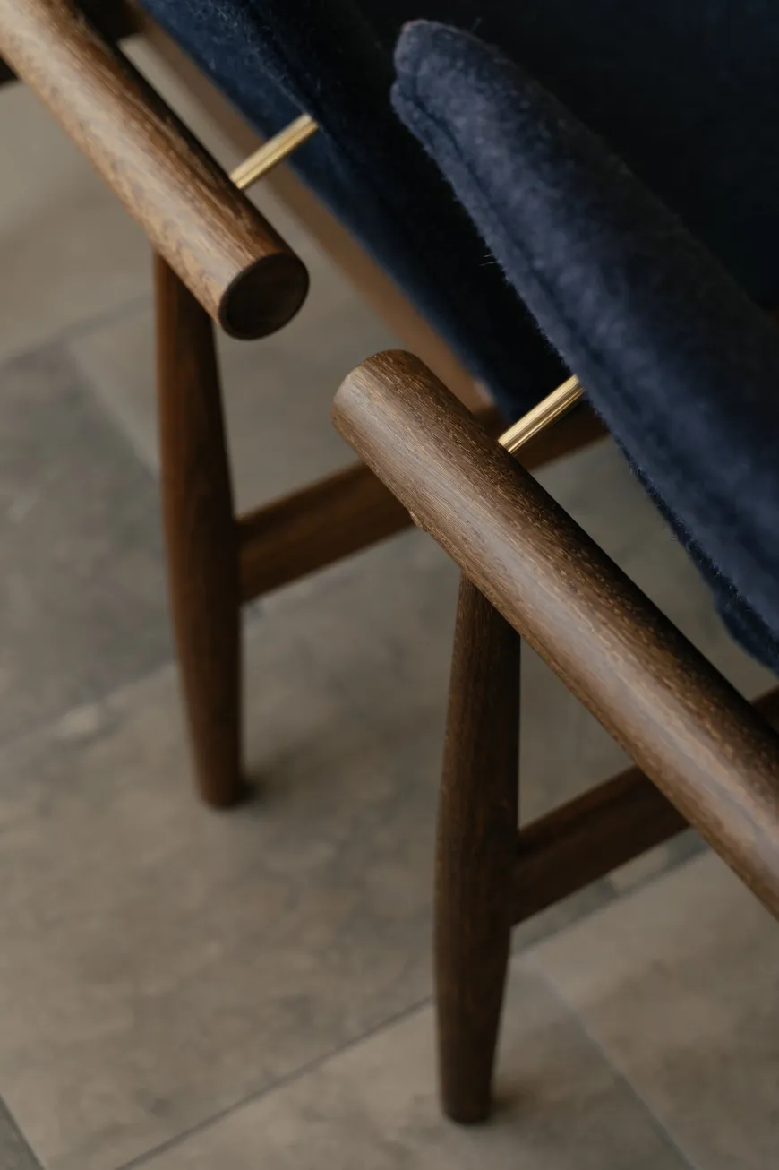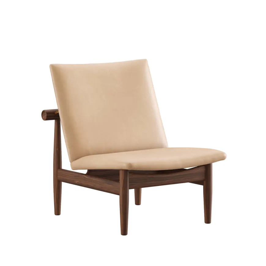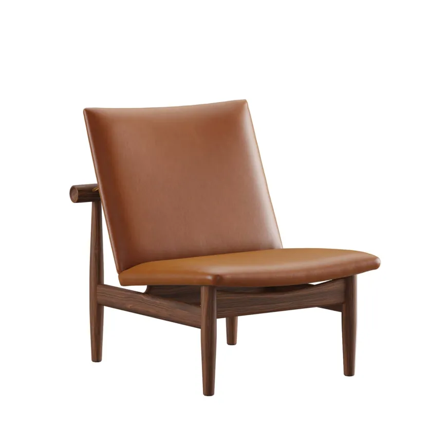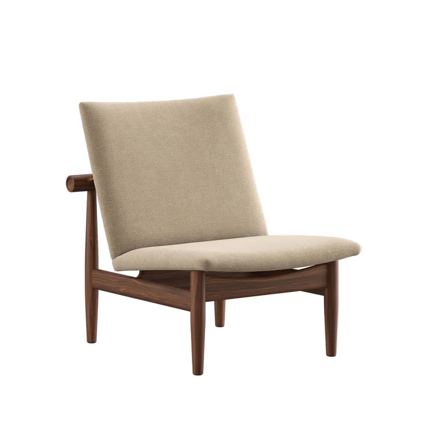 Japanstolen af Finn Juhl forener japansk inspireret ro med dansk snedkerkvalitet. Den markante tværliggende rygsprosse svæver visuelt fri af stellet via små afstandsstykker i messing, hvilket skaber et let og elegant udtryk. I olieret egetræ står stolens organiske detaljer skarpt, mens det brede, lave sæde inviterer til afslappet loungekomfort i stuen, læsehjørnet eller receptionen. En ikonisk klassiker fra 1957, relanceret af House of Finn Juhl, som stadig fremstilles med stor omhu og mulighed for håndpolstring i både stof og læder.
