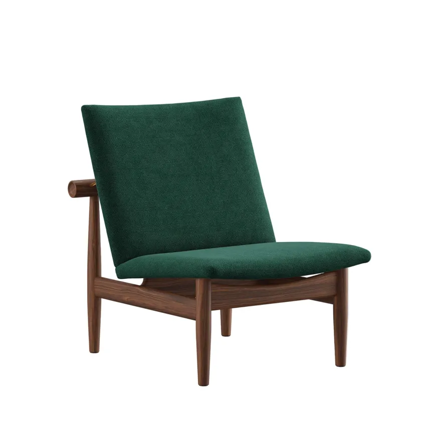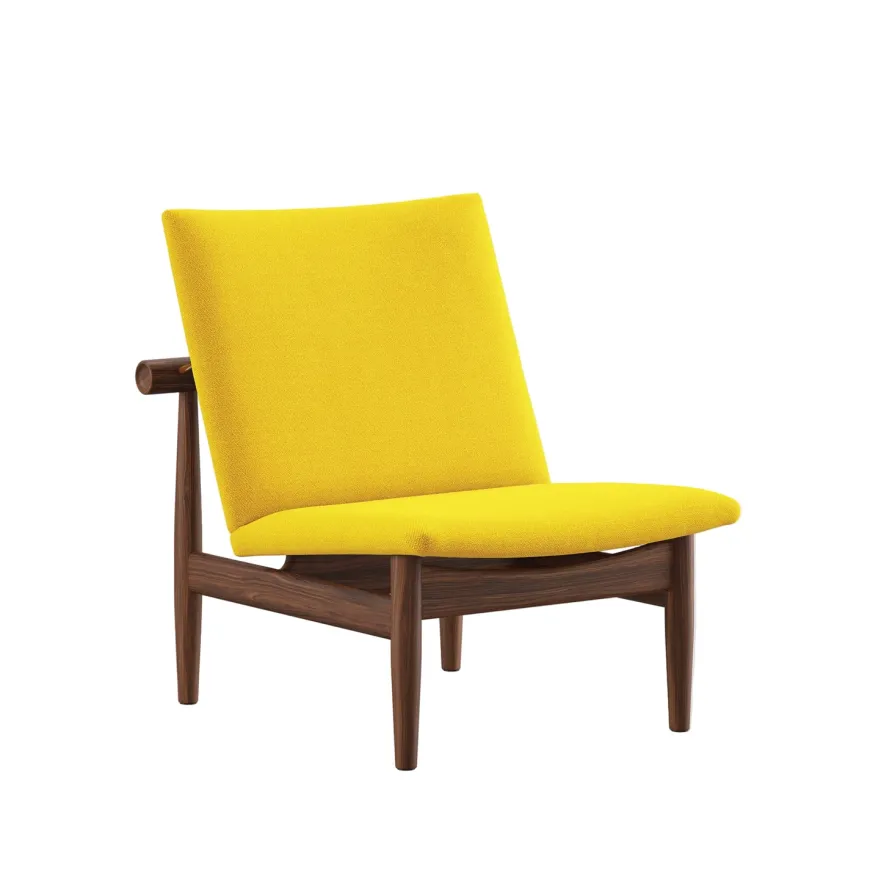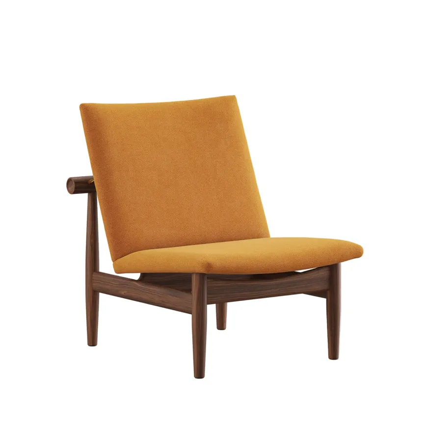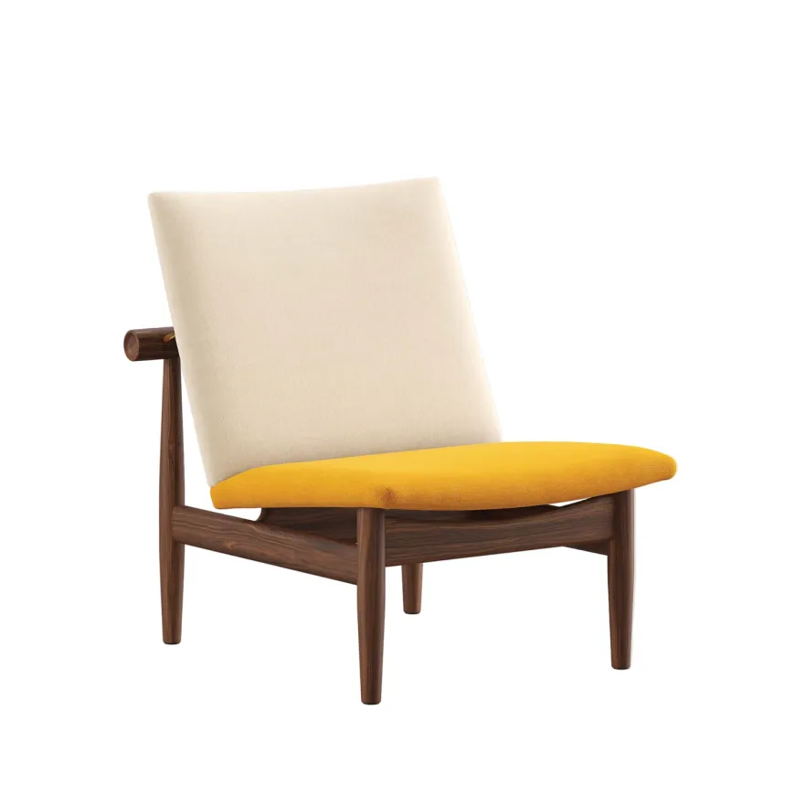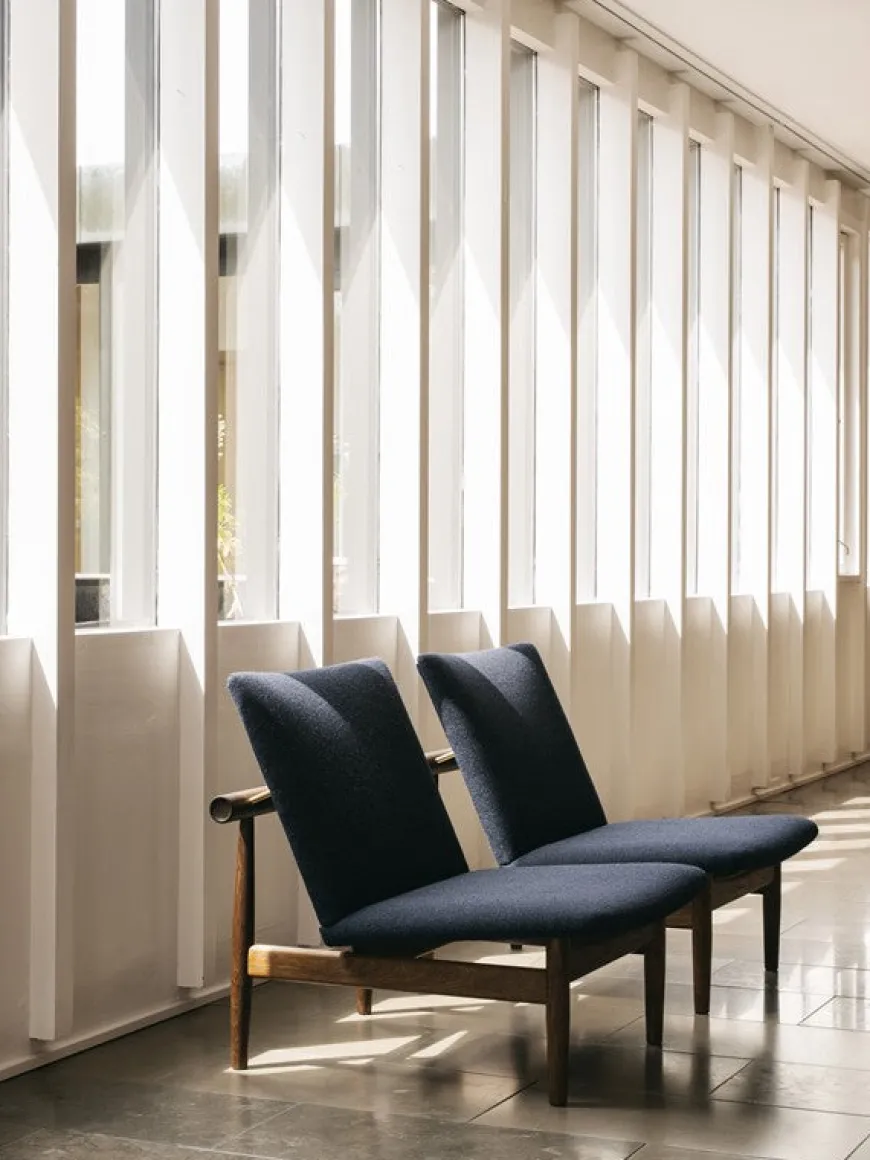 Japanstolen af Finn Juhl forener japansk inspireret ro med dansk snedkerkvalitet. Den markante tværliggende rygsprosse svæver visuelt fri af stellet via små afstandsstykker i messing, hvilket skaber et let og elegant udtryk. I olieret egetræ står stolens organiske detaljer skarpt, mens det brede, lave sæde inviterer til afslappet loungekomfort i stuen, læsehjørnet eller receptionen. En ikonisk klassiker fra 1957, relanceret af House of Finn Juhl, som stadig fremstilles med stor omhu og mulighed for håndpolstring i både stof og læder.