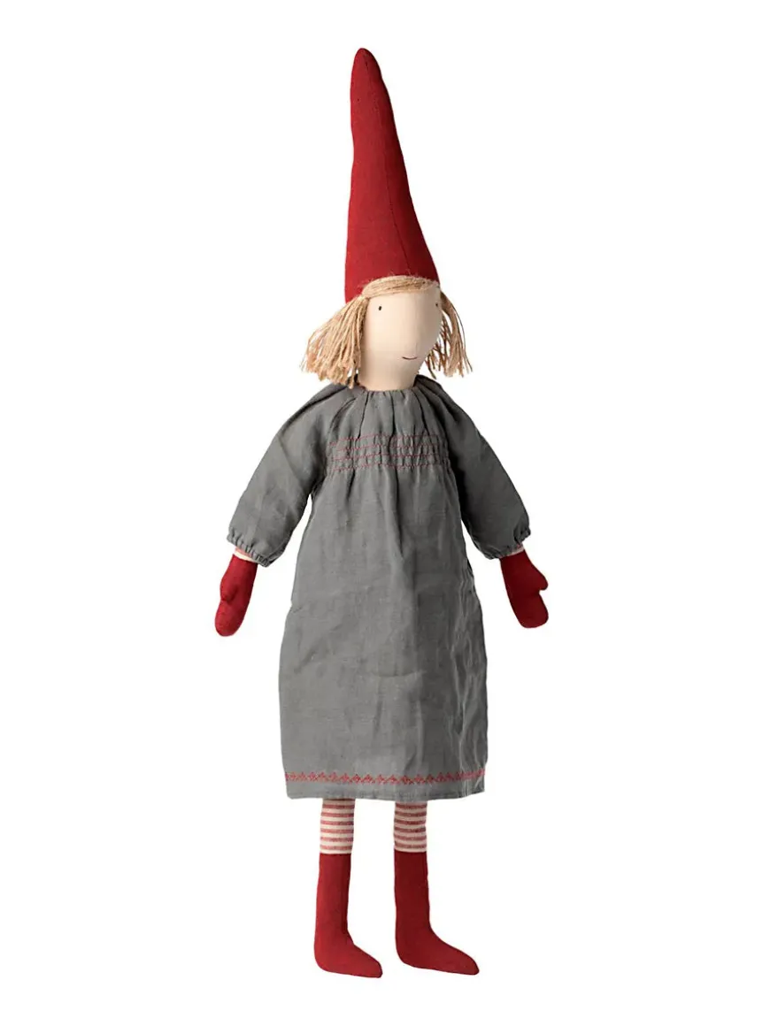 Julemandens dejlige kone. Hun bærer en smuk, strikket lammeuldskjole. Sammen med julemanden bringer hun den ægte julestemning i ethvert hjem.