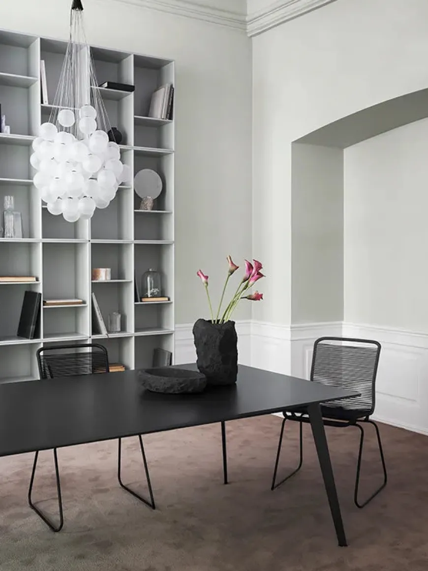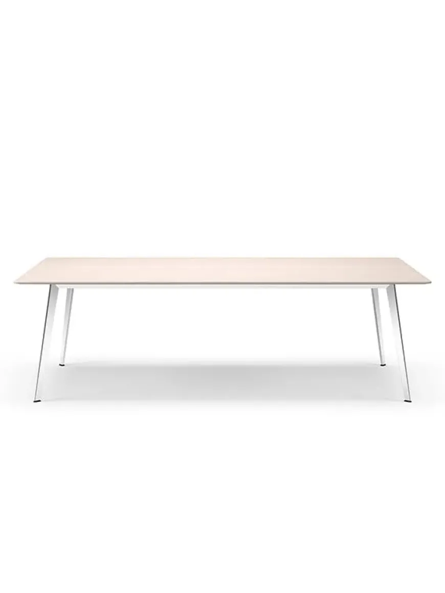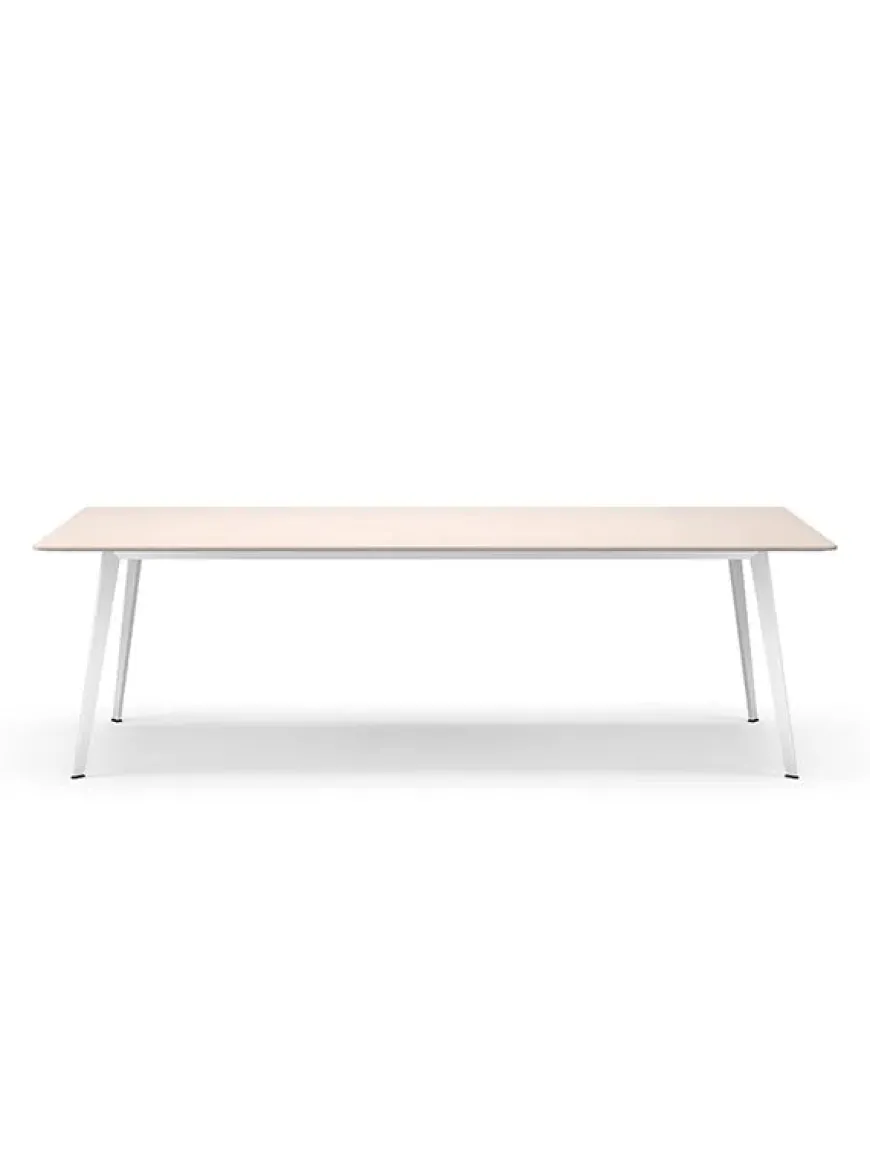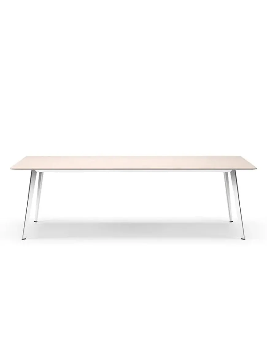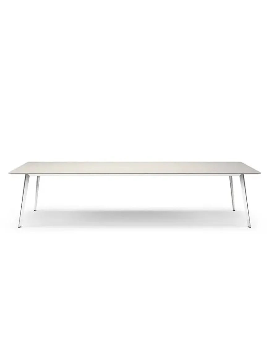 Det store JW bord fra Montana måler 320 x 120 cm. Bordet laves med flere forskellige bordplader med stel i lakeret New Snow eller sort, eller i poleret aluminium.