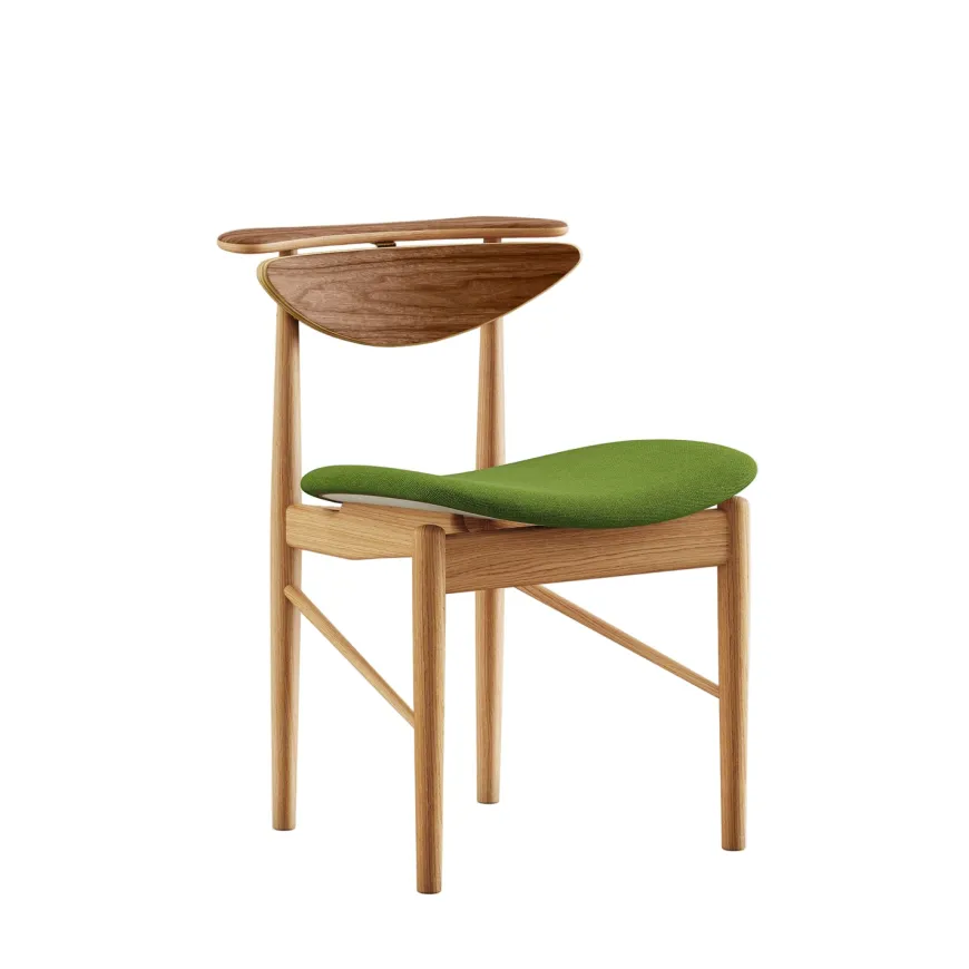 Karmstolen også kaldet Reading Chair, her i ask klar olie, er Finn Juhls elegante fortolkning af den lette læse og spisebordsstol. De bløde organiske linjer og den horisontale overligger inviterer til naturlig armstøtte, mens den åbne siddekomfort gør stolen lige behagelig for en rolig stund med en bog eller omkring bordet i mange timer. Askens lyse åretegning står smukt under den klare olie, der beskytter og fremhæver træets naturlige glød. En tidløs klassiker fra 1953 med præcist forarbejdede detaljer og en finish der taler til både designkendere og moderne hjem.