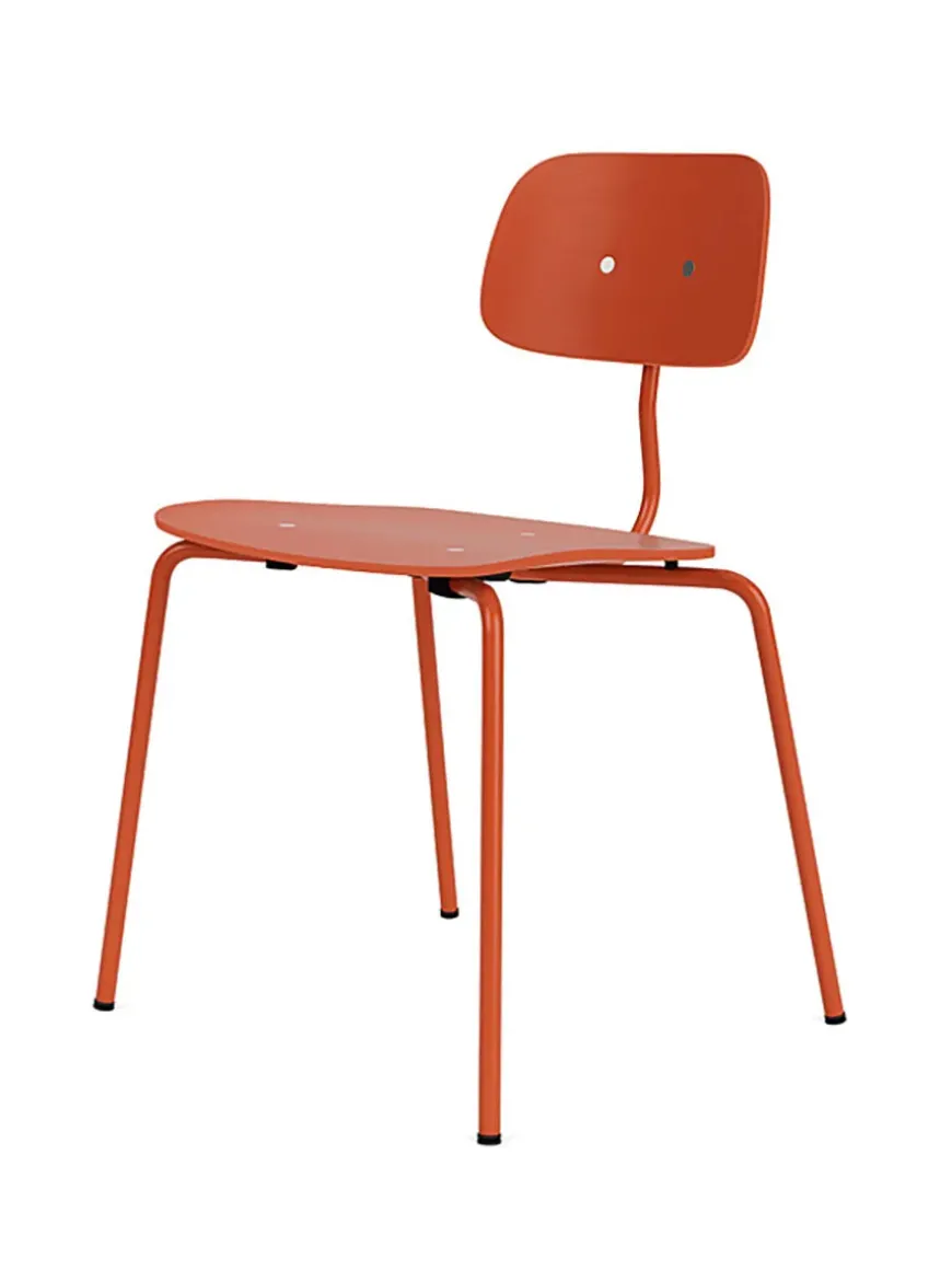 Denne variant af Kevi 2060 stolen er i Hokkaido, med mulighed for at vælge stellet i 9 forskellige farver. Den stabelbare spisestol er designet af Jørgen Rasmussen og fås med sæde og ryg i eg eller lakeret. Her i den lakerede version.