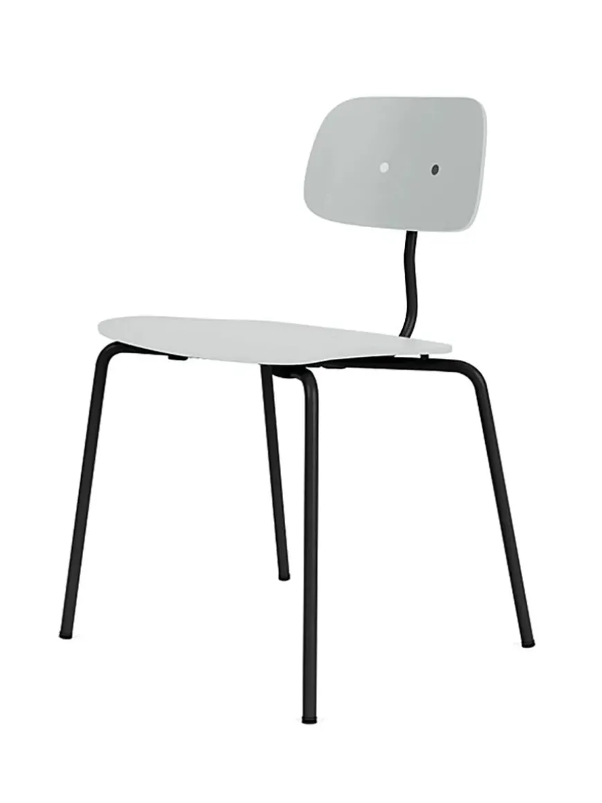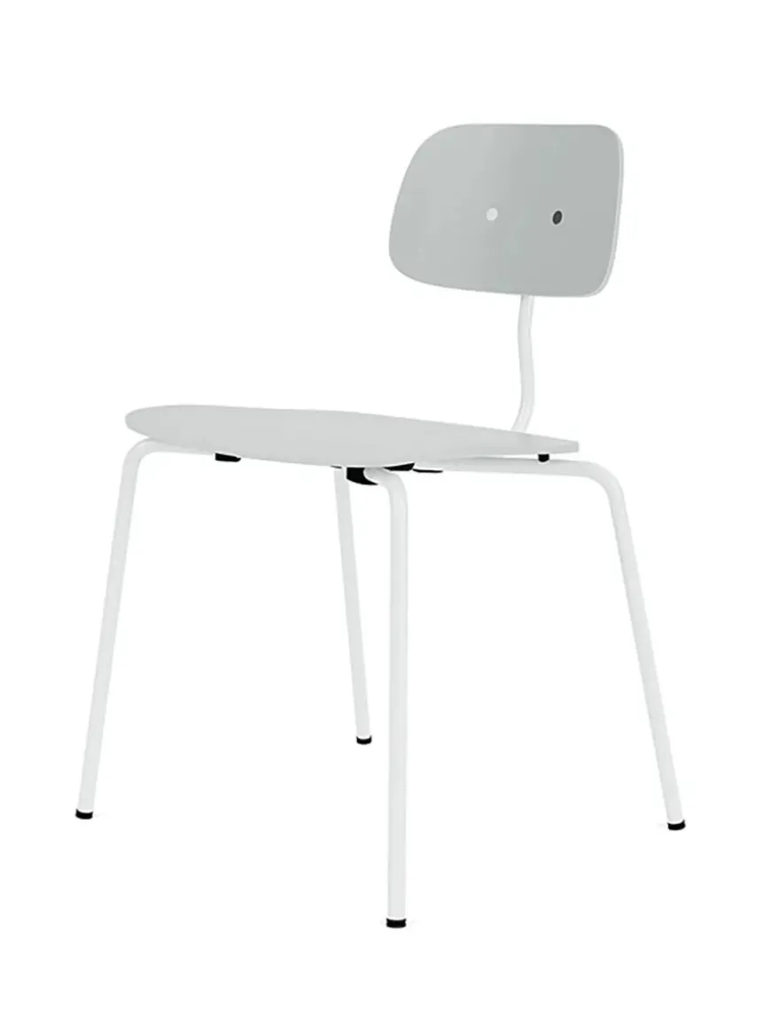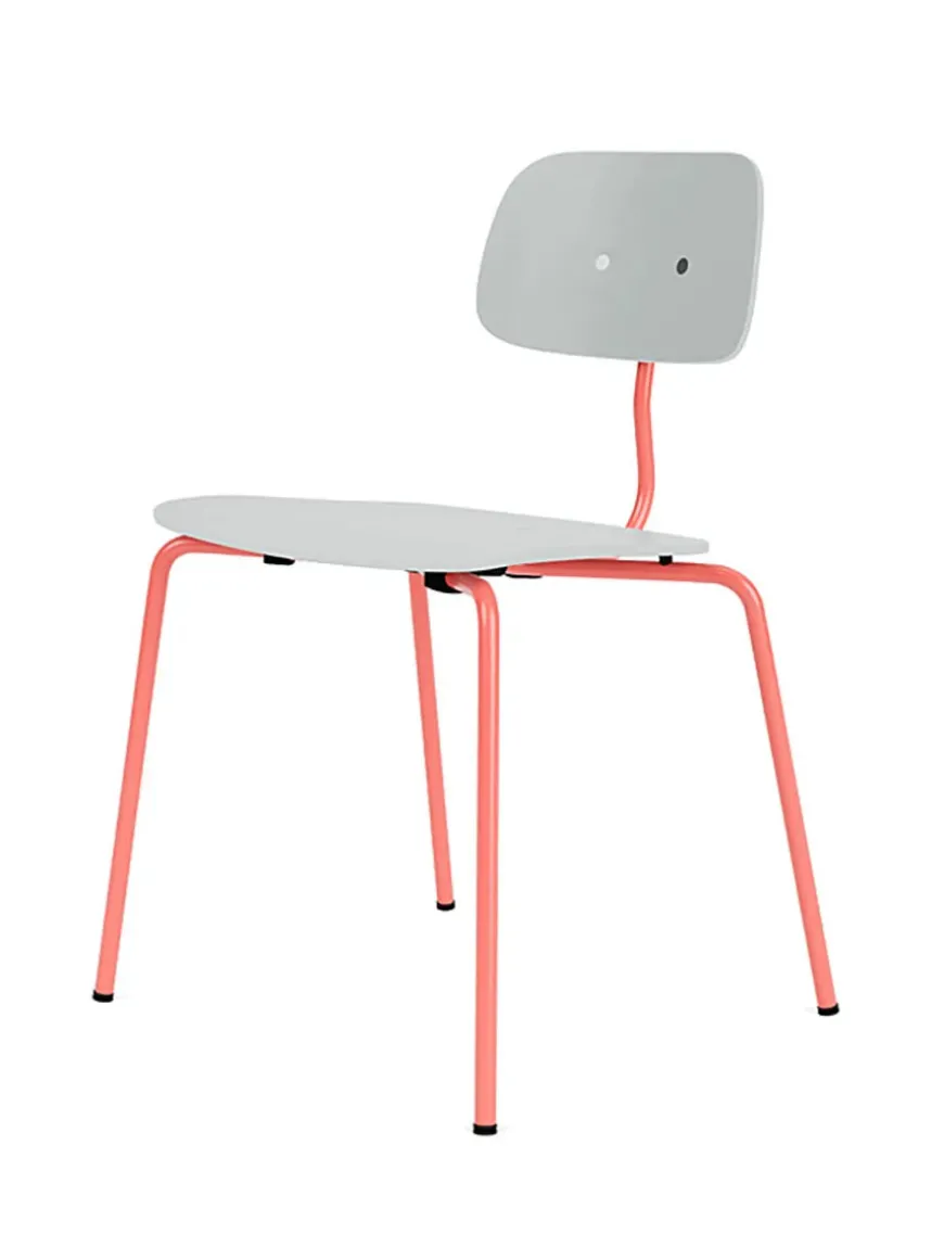 Denne variant af Kevi 2060 stolen er i Oyster, med mulighed for at vælge stellet i 9 forskellige farver. Den stabelbare spisestol er designet af Jørgen Rasmussen og fås med sæde og ryg i eg eller lakeret. Her i den lakerede version.