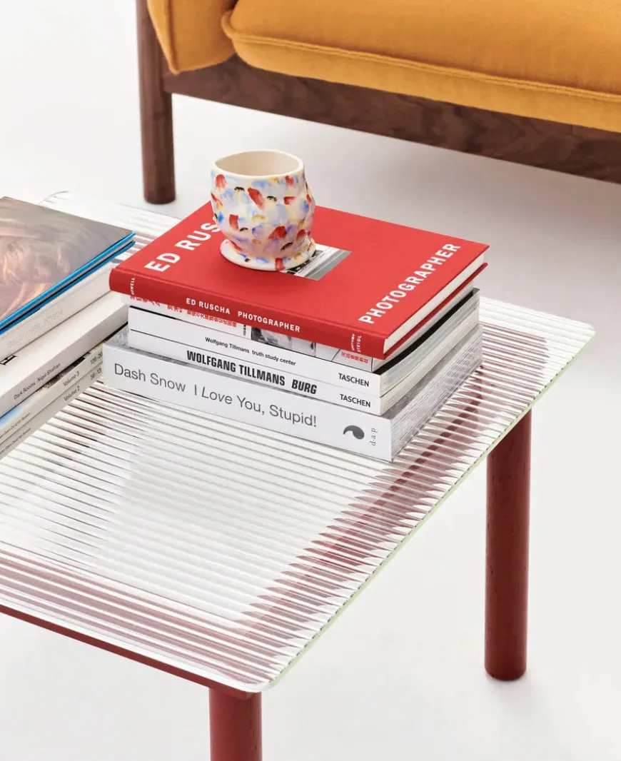 Kofi sofabordet fra HAY er designet af Martin Solem og denne variant måler 140 x 50 cm. Bordet laves med et stel i egetræ eller valnød. Bordplader: – Clear glass – Clear reeded glass Mål: Længde: 140 cm Dybde: 50 cm Højde: 36 cm