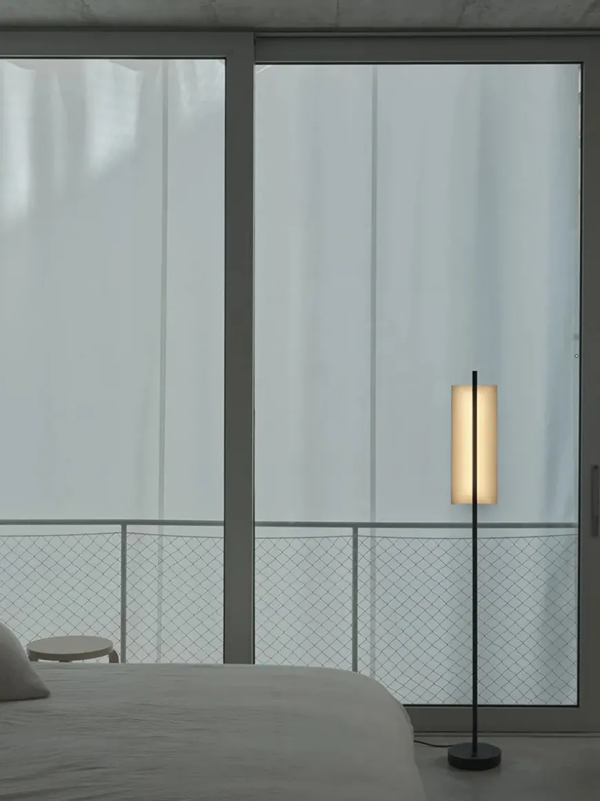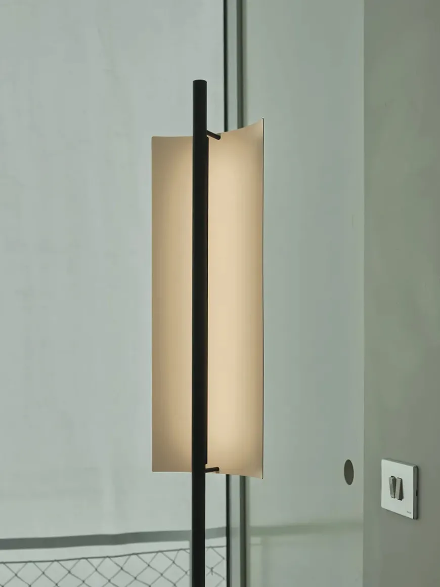 Lámina 45 gulvlampen har et minimalistisk og strømlinet design. Lampen passer perfekt ind i den moderne boligindretning med dens slanke silhuet. Lámina gulvlampen er udstyret med indbygget LED-lys og en tynd metalplade, der svagt men effektivt spreder lyset. Lampen ligner en lysende skulptur og kan bruges i flere rum i hjemmet. Skærmen er i en hvidgrå farve med blank finish udvendig, mens stellet er sort med mat finish.