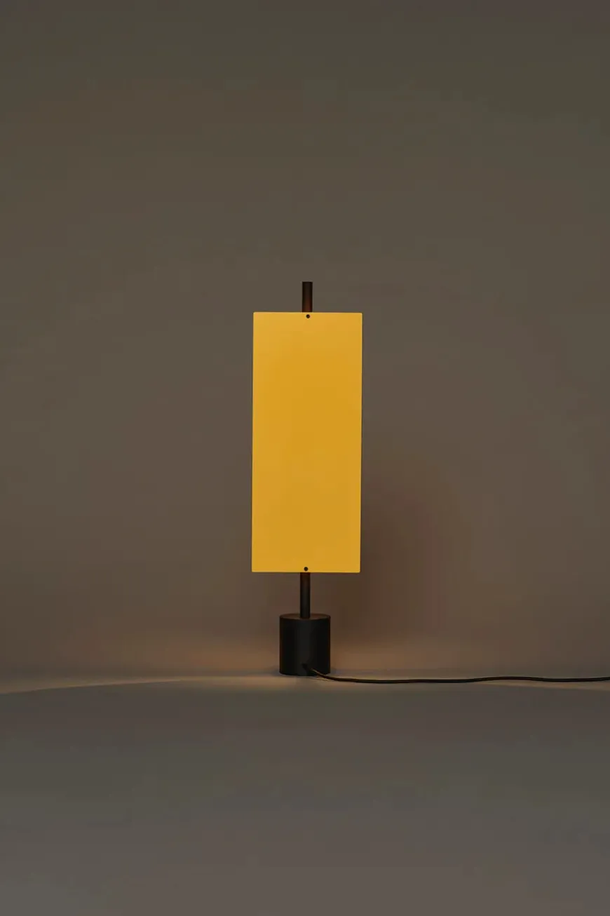 Lámina Dorada 45 bordlampen har et minimalistisk og strømlinet design. Lampen passer perfekt ind i den moderne boligindretning med dens slanke silhuet. Lámina Dorada bordlampen er udstyret med indbygget LED-lys og en tynd flad metalplade, der svagt men effektivt spreder lyset. Lampen ligner en lysende skulptur og kan bruges i flere rum i hjemmet. Den flade skærm er i en gylden farve, mens stellet er sort med mat finish.