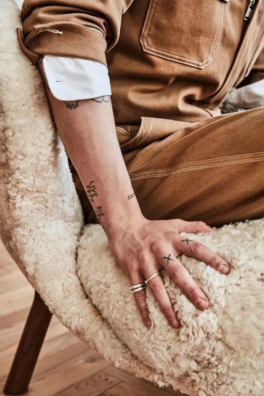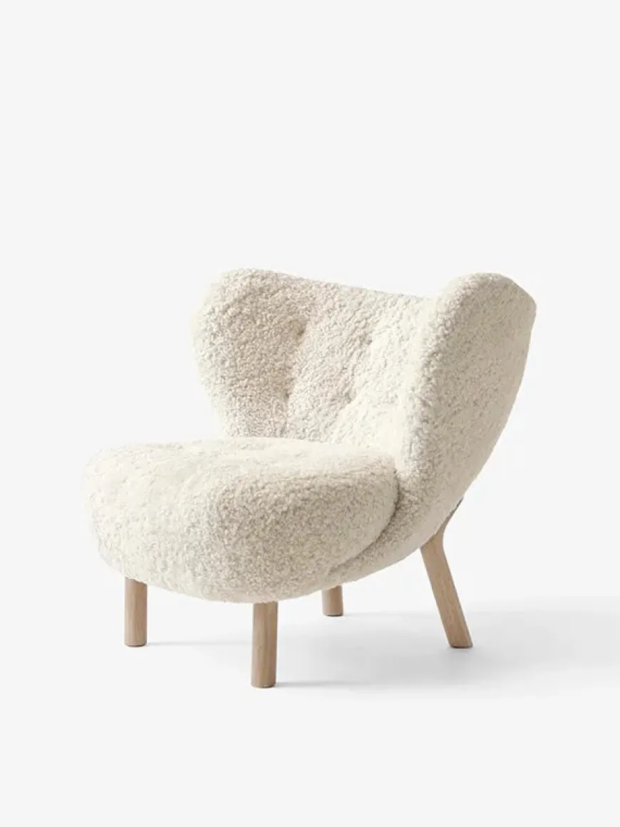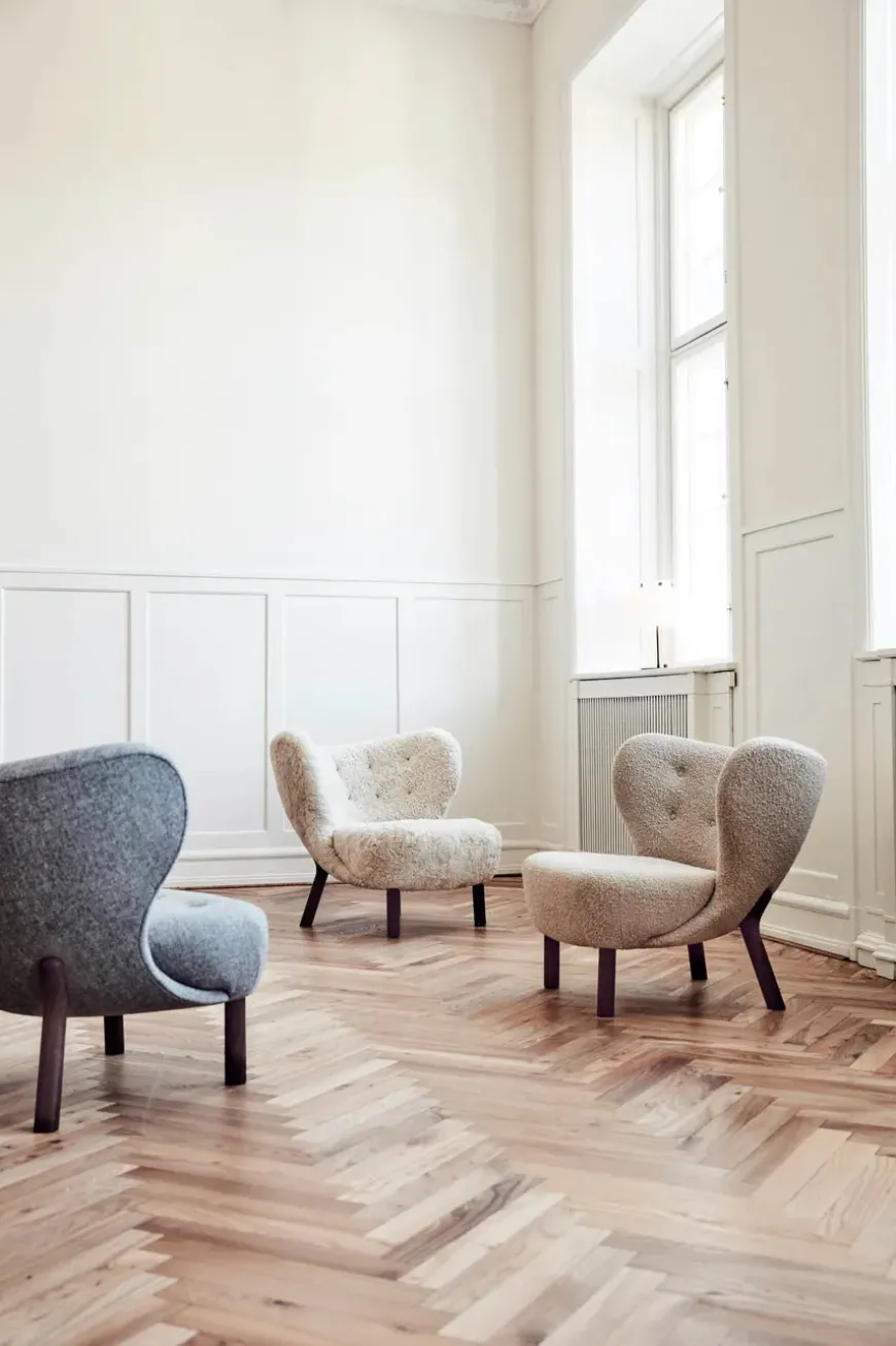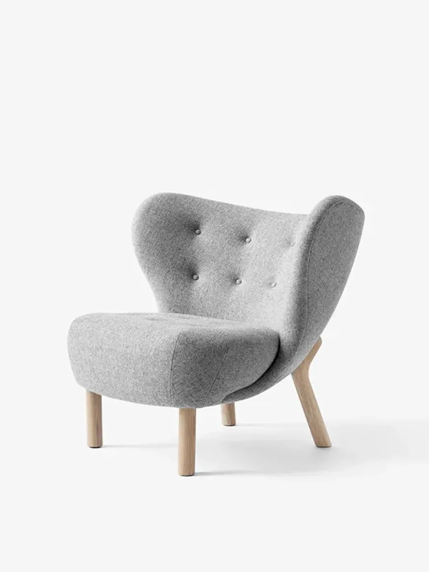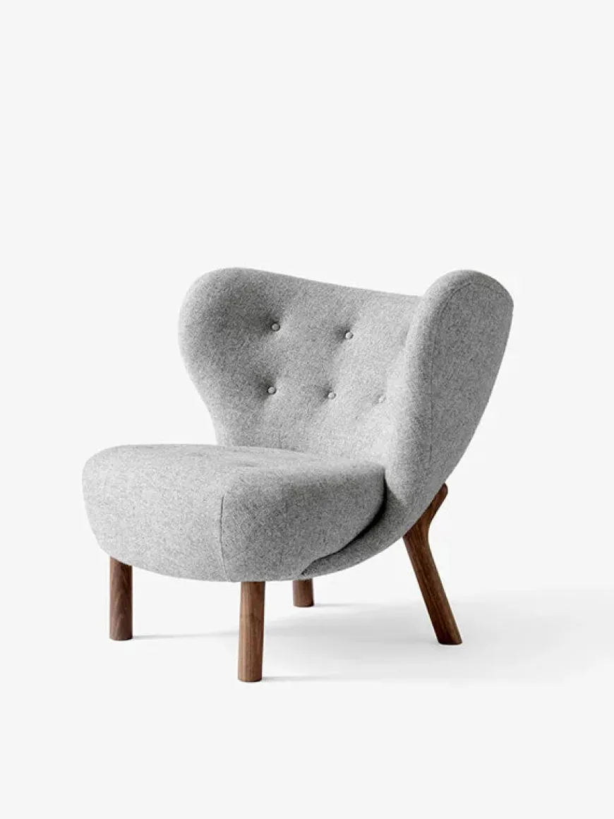 Little Petra lænestolen fra &Tradition er designet af Viggo Boesen i 1938. Stolen ses her i udvalgte udgaver, kontakt butikken hvis ønske om andre stoftyper.