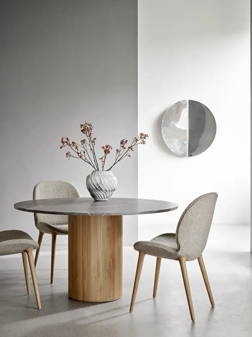 Kombiner Logde stolen med det smukke cabin marmor spisebord fra Vipp, for at skabe kontrakt mellem det tunge og elegante.