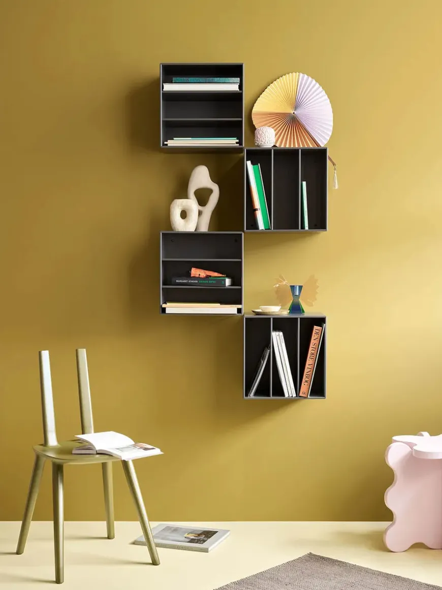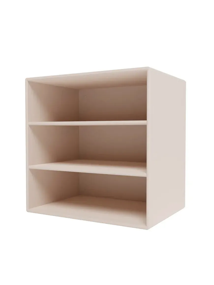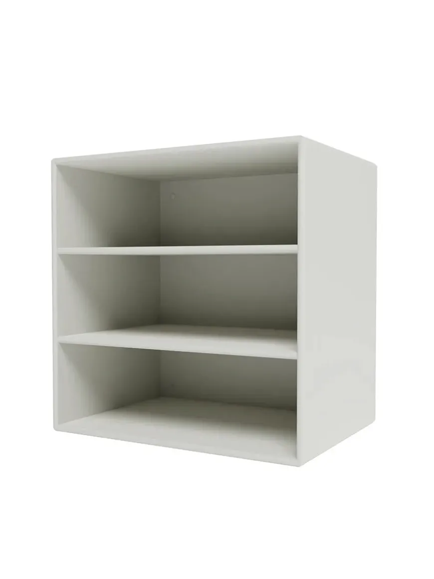 Montana Mini er en serie med mindre opbevaringsmoduler, som laves i 10 forskellige farver. Her finder du modulet med to hylder, som giver tre rum horisontalt, med gode muligheder for opbevaring af diverse ting, eksempelvis i soveværelset, entréen eller stuen. Serien laves af 8 millimeter MDF modsat de 12 millimeter, som resten af Montanas reoler. Ophæng medfølger.