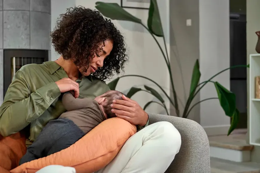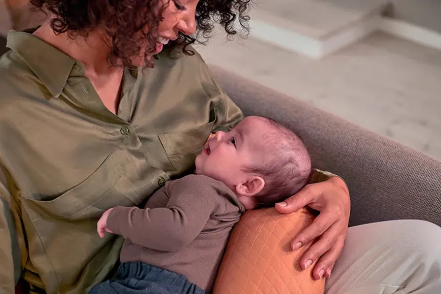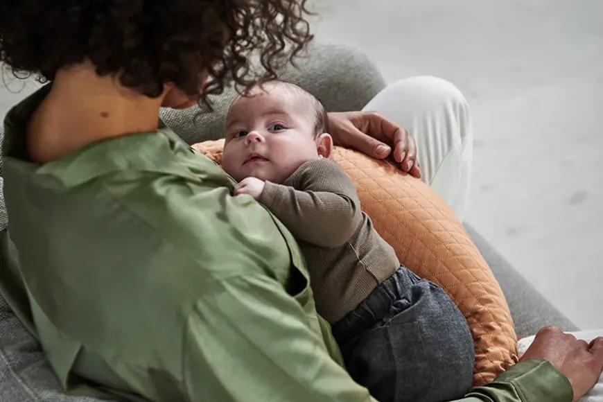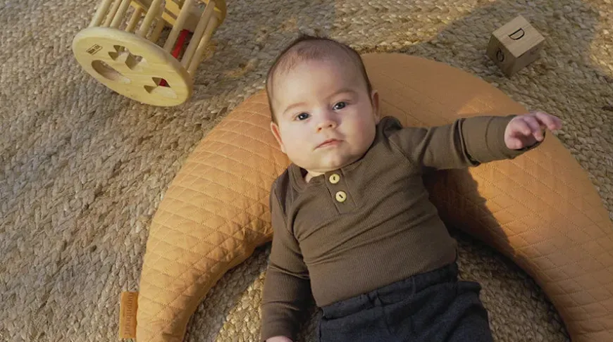 Den måneformede ammepude kan også bruges til leg og tumligetræning.