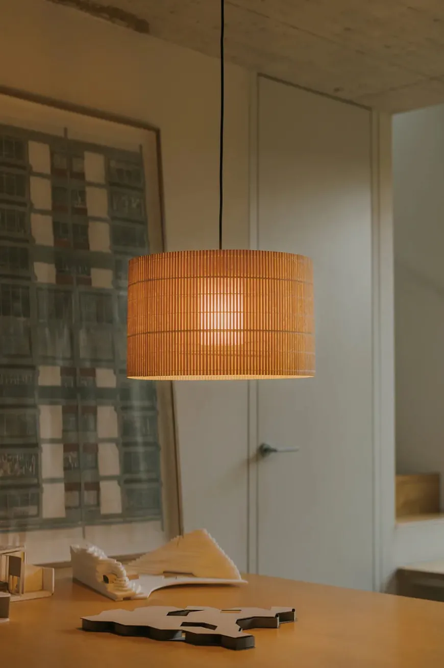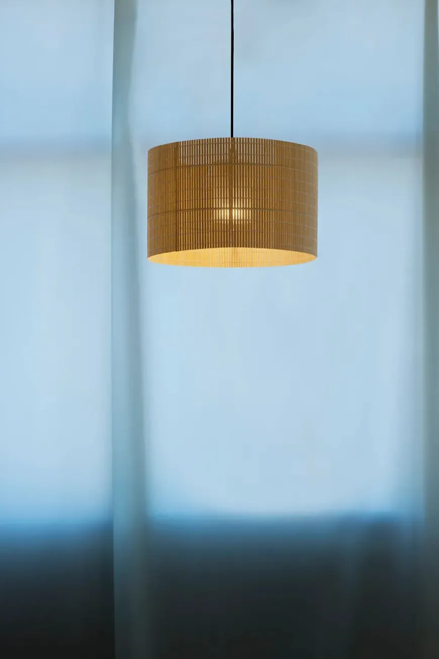 Nagoya pendel giver en varme til rummet grundet sin flotte skærm. Lampeskærmen er lavet af tynde lodrette strimler af træ, der diskret er fastgjort til en minimalistisk metalkonstruktion. Nagoya var den første vinder af Golden Delta prisen for bedste industrielle design i Spanien i 1961. Lampen giver en dejlig ro og zen følelse i indretningen. Lampen er oplagt at have hængende i soveværelset, over spise- eller sofabordet.