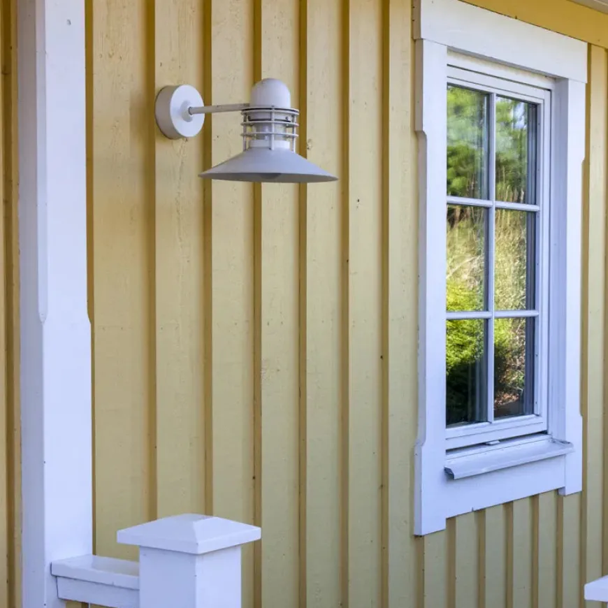 Skærme og top er i optrukket aluminium med en hvid vådlakeret overflade og en mat hvid inderside. Bagdåse i støbt aluminium og bagdåseskjuler i optrukket aluminium.