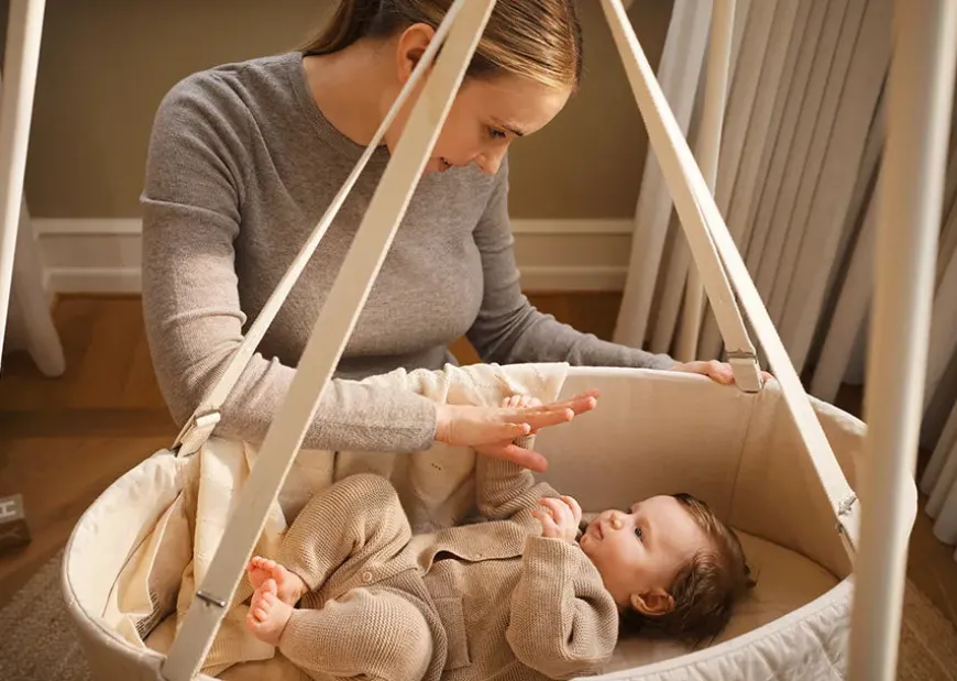 Vuggen er her i den afslappende og neutrale farve nature.