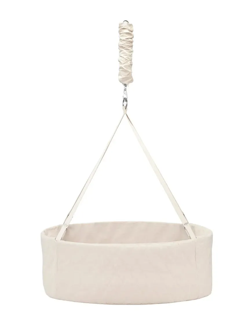 Vuggen er GOTS-certificeret og kommer med en blød skummadras og et quiltet betræk i 100% økologisk bomuld med harlekinmønster.