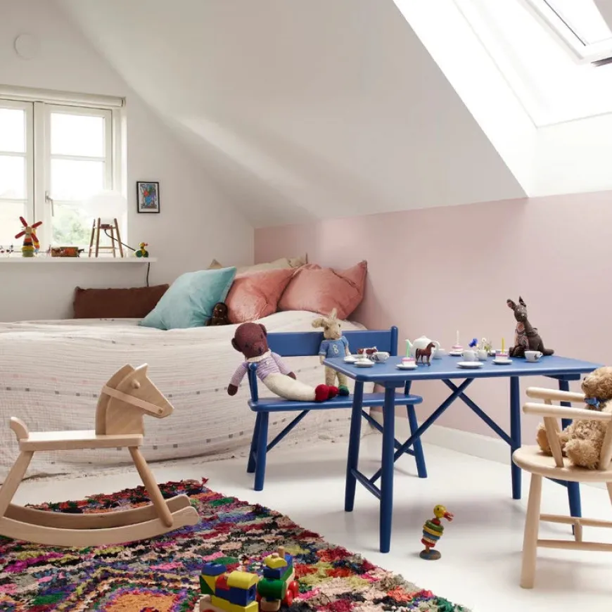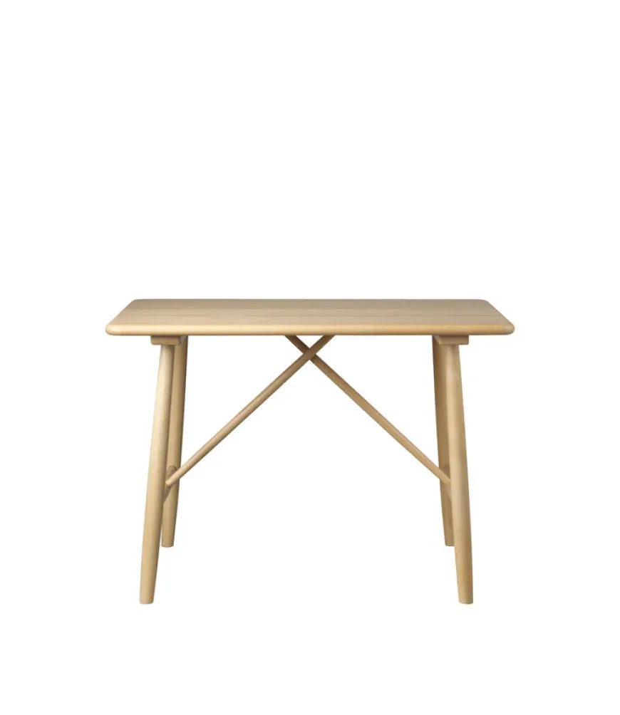 P10 er børnebordet der gør hverdagens leg og fordybelse smuk og enkel. Den rektangulære plade med blødt afrundede hjørner og de let skrånende ben giver et roligt udtryk og en stabil base til puslespil tuscher og små måltider. Bordet er en trofast videreførelse af Mogensens funktionelle formsprog fra 1946 og passer naturligt sammen med P9 børnestolen og P11 bænken. Vælg natur for et varmt klassisk look eller en af de fine farver der bringer leg og personlighed ind i rummet. Bordet er FSC certificeret og svanemærket så du får god samvittighed sammen med det tidløse design.