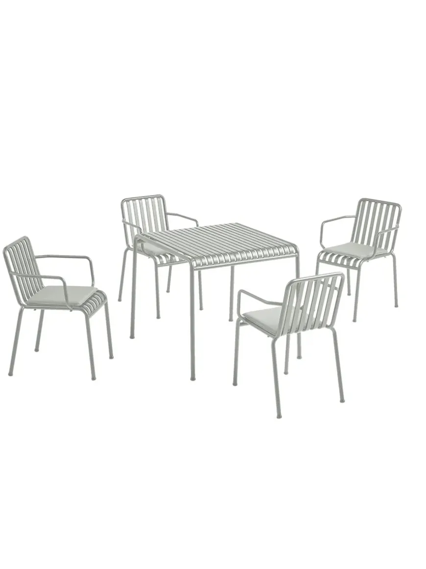 HAY Palissade Collection Den efterånden velkendte og holdbare Palissade kollektion fra HAY er både funktionel og smuk at se på. Her i et sæt med 4 stole og et spisebord i farven “Olive”.