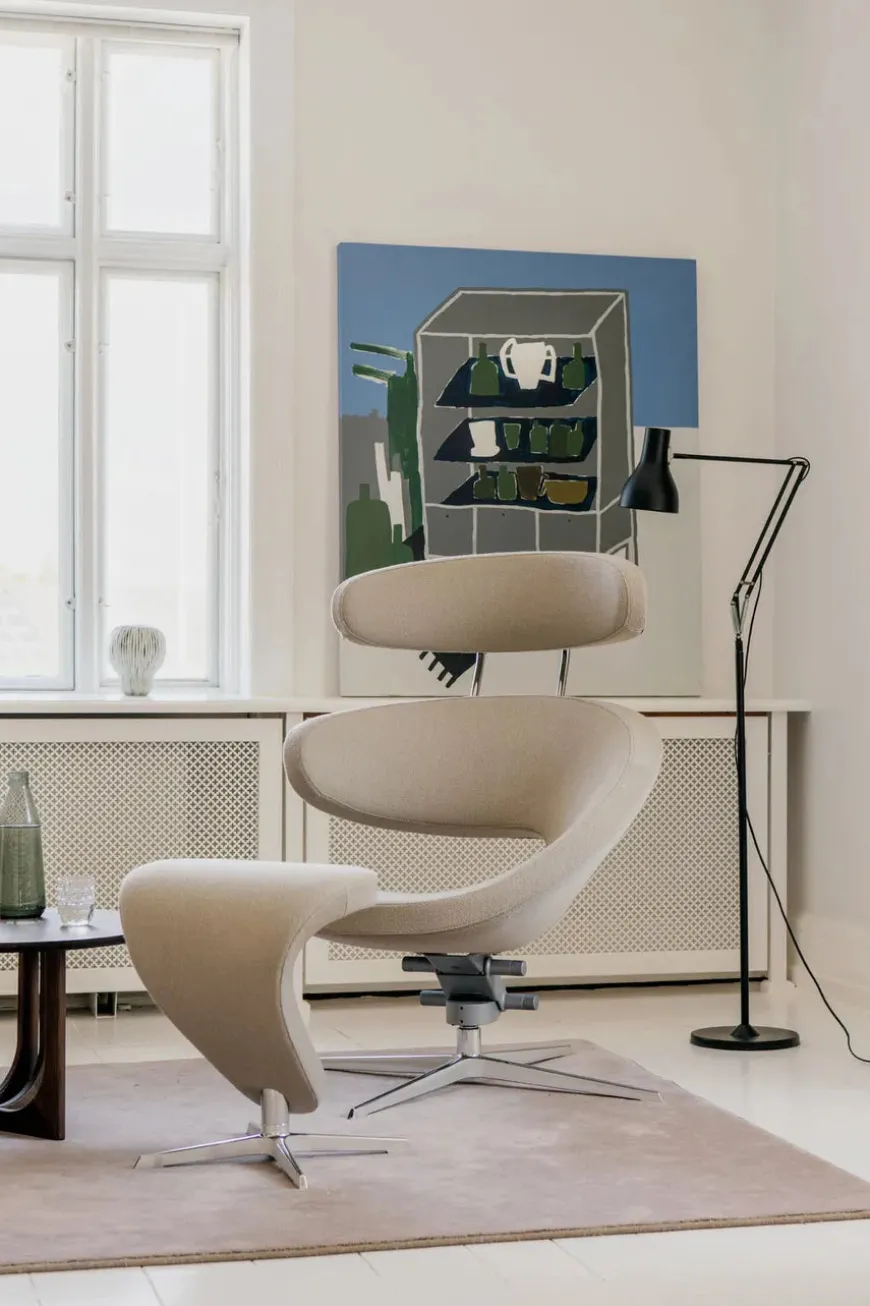 Peel fra Variér er en fantastisk komfortabel lænestol, i aller højeste kvalitet. Peel lænestolen giver dig ergonomiske fordele som styrker både ryg og lænd. Stolen har et patenteret fjedersystem med 3 stillinger: En siddende, en let tilbagelænet og en liggende. Peel leveres også spejlvendt. Få symmetri i stuen med 2 spejlvendte Peel. Designet af Olav Ledøy, Johan Verde & Ole Petter Wullum. Stolens Bredde 81 cm, Dybde 81 cm, Højde 113-123 cm, Sædehøjde 46 cm, fremstilles i flere træsorter med stof eller læderbetræk. Peel findes i mange forskellige varianter så kontakt endelig Jacobsen Plus for mere information, – så finder vi den rette stol til dig.