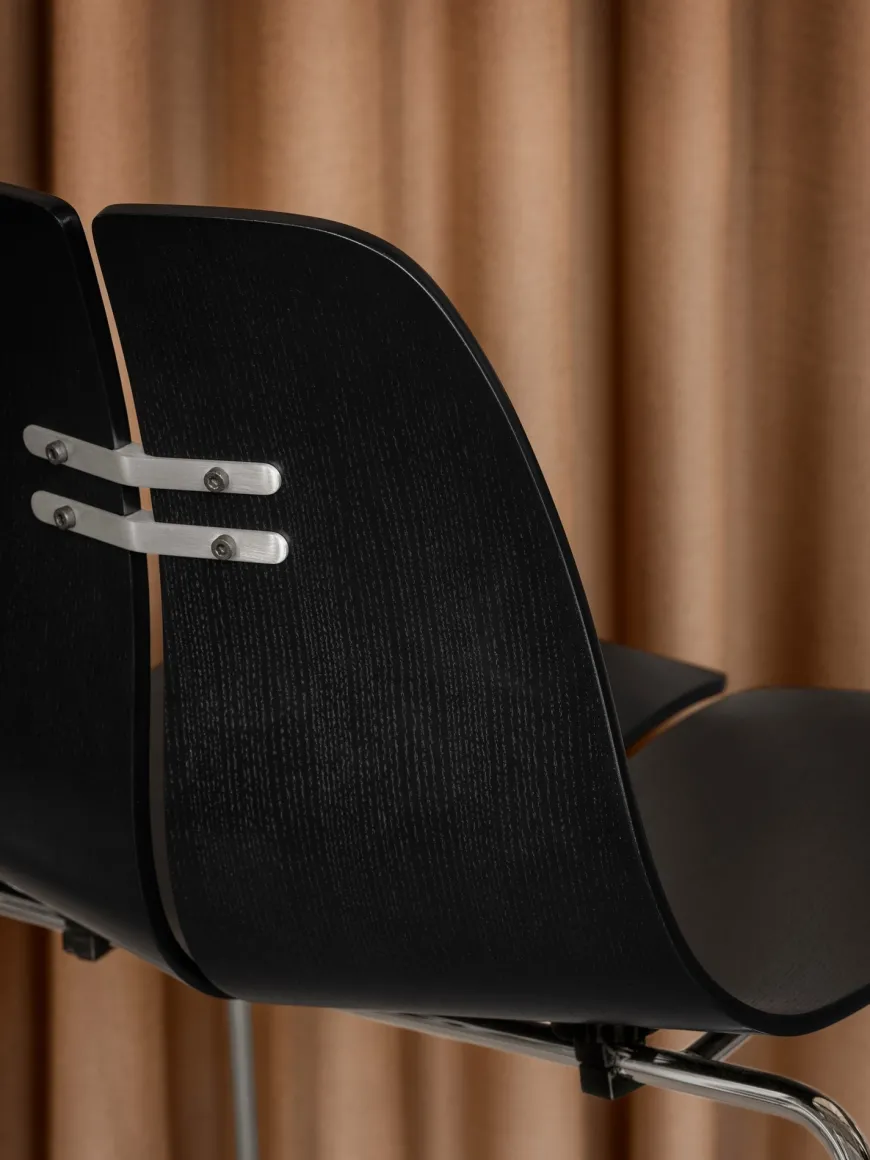 PK3™ i eg er designet af Poul Kjærholm og realiseret af Fritz Hansen mere end 70 år efter sin oprindelse. Den lyse, formpressede finer fremhæver træets naturlige struktur og giver stolen et varmt og tidløst udtryk. Med sit kompakte fodaftryk og præcise proportioner balancerer stolen mellem teknisk stringens og organisk lethed – ideel til både hjem og professionelle omgivelser.