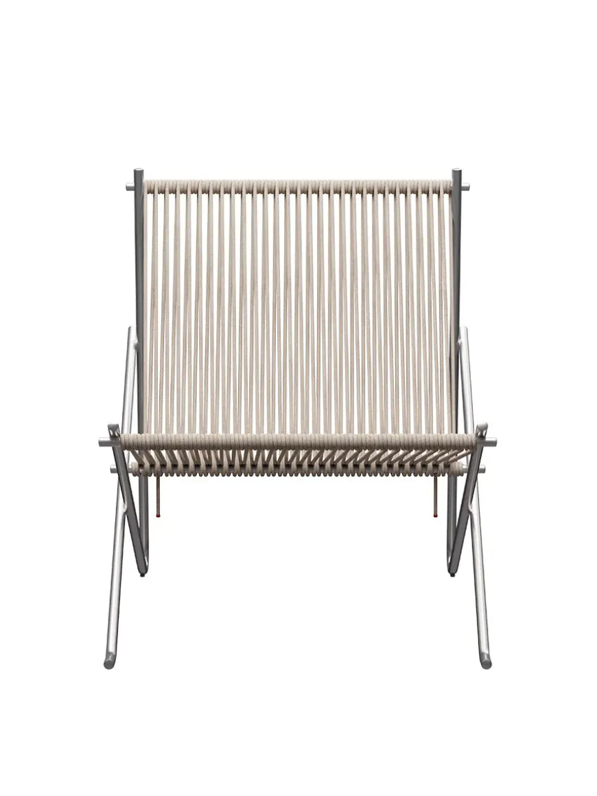 PK4 stolen er et forrygende eksempel på Poul Kjærholms karakteristiske designstil. Det naturlige udtryk i flaglinen sat sammen med et hårdt stel rustfrit stål giver den helt rigtige balance i stolens udseende. PK4 loungestolen er oprindeligt designet i 1952 og blev på det tidspunkt kun produceret i et meget begrænset antal. Nu har Fritz Hansen taget stolen frem igen som en hyldest til . PK4 stolen fås desuden i en model med hynde i enten canvas eller læder. Designer: Poul Kjærholm Mål: H 72 x B 62,5 x D 74,5 cm Sædehøjde: 38 cm
