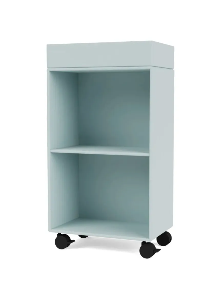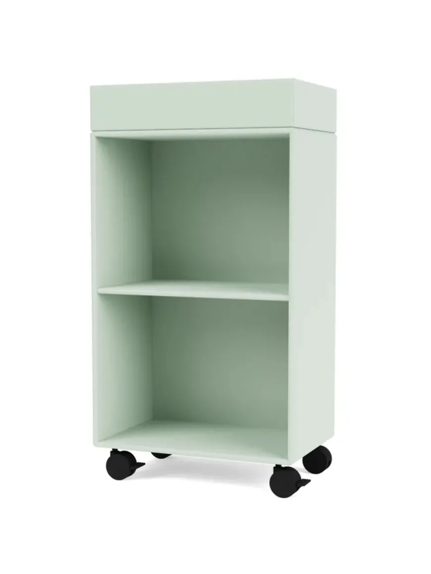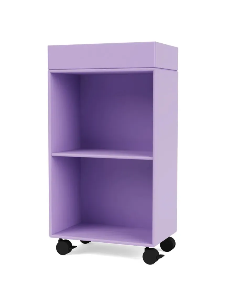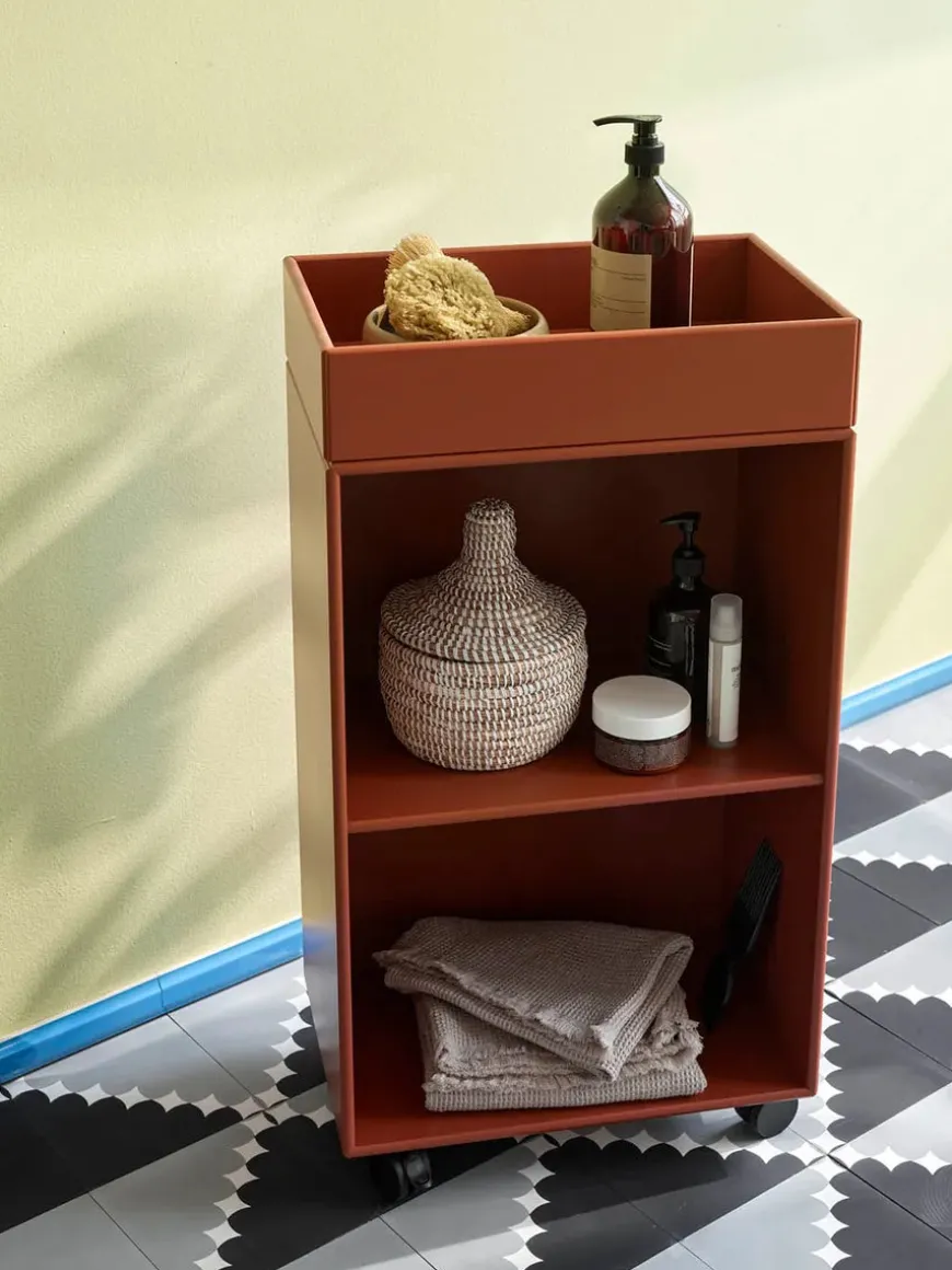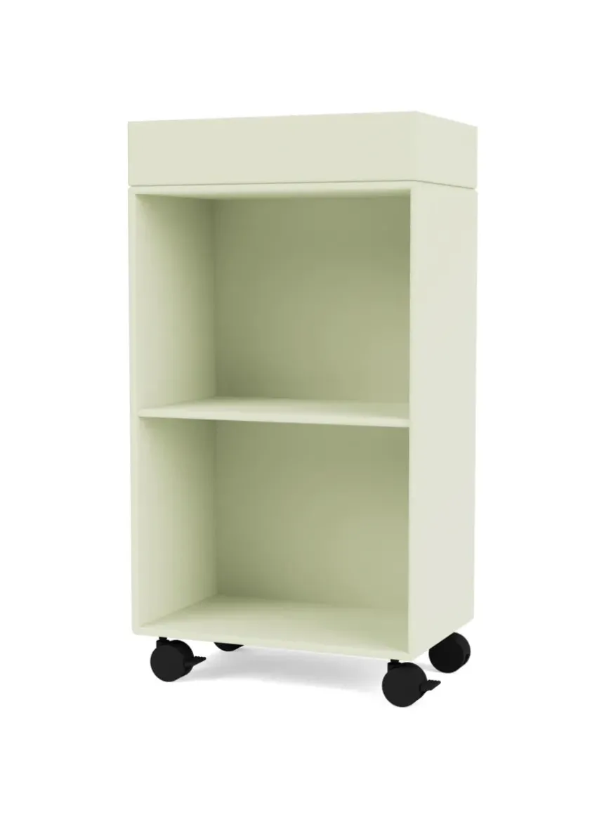 Preppy er en badeværelsesvogn og mobil opbevaring på hjul lavet af 12 mm vandafvisende MDF. Modulet har to rum og en bakke på toppen. Preppy er ideel til opbevaring af håndklæder, wellness- og skønhedsartikler – eller styling såsom planter. Preppy vognen er certificeret med det danske indeklimamærke og det officielle EU Ecolabel, hvilket gør den til et sikkert valg for dig, dine omgivelser og miljøet. Den kommer i Montanas poetiske farvepalet med 40 nuancer. Selections i vandafvisende MDF er uden pilothuller. Badeværelsesmodulerne er godkendt til badeværelser, men må ikke placeres nogen steder, hvor der opstår direkte kontakt med vand.