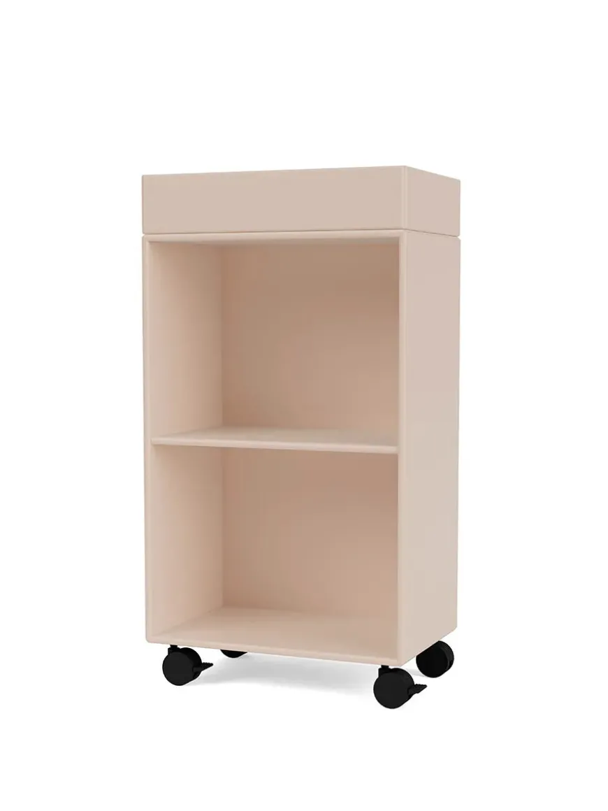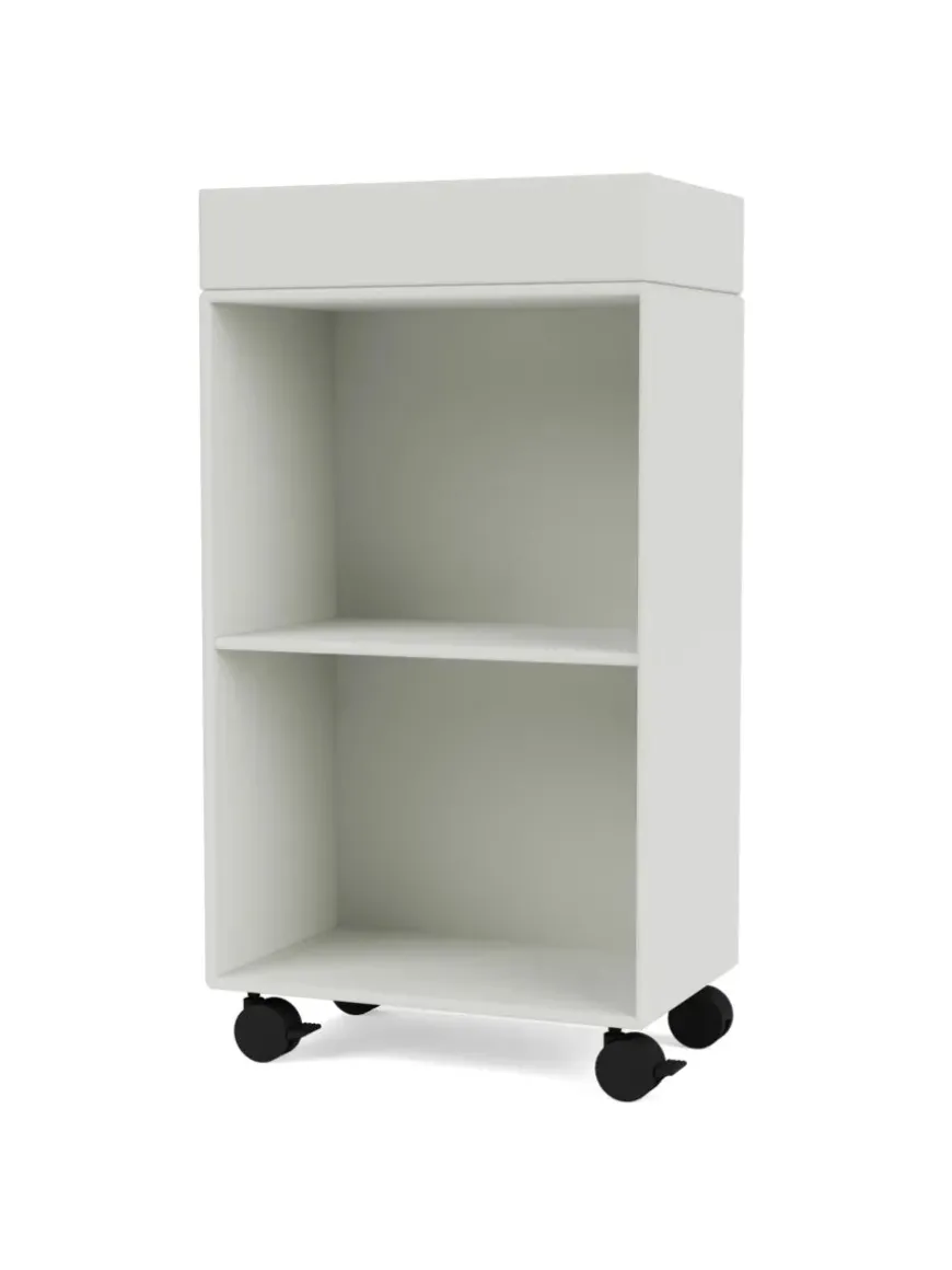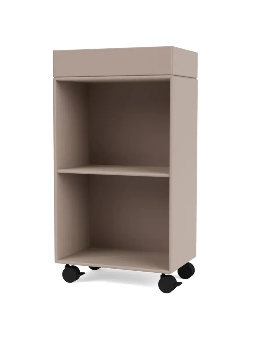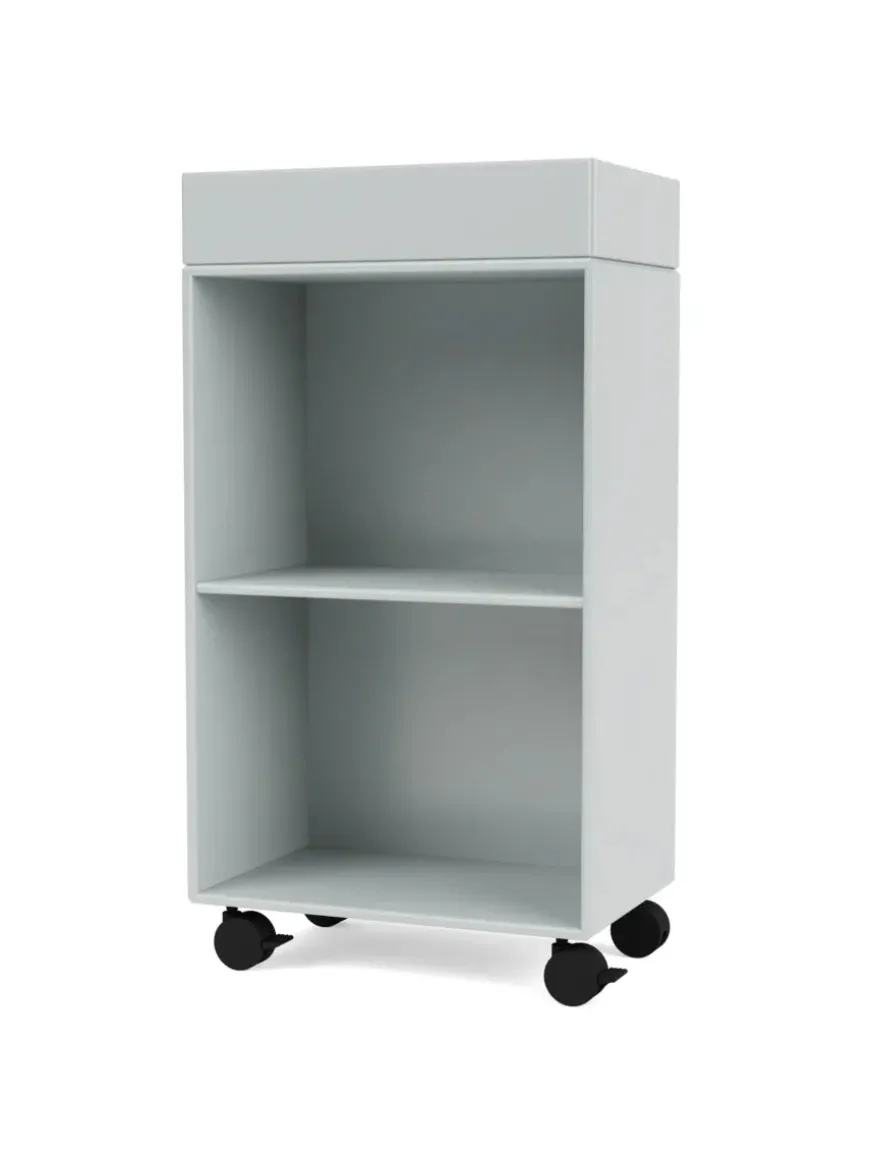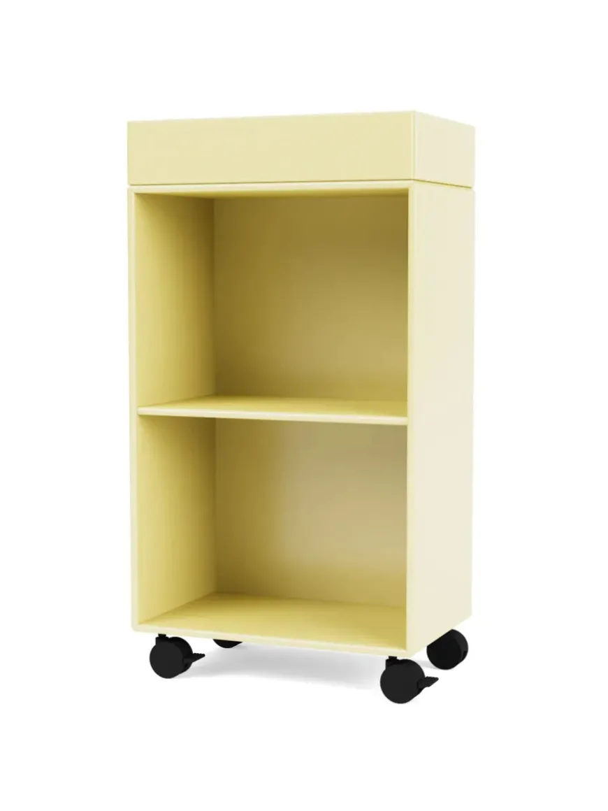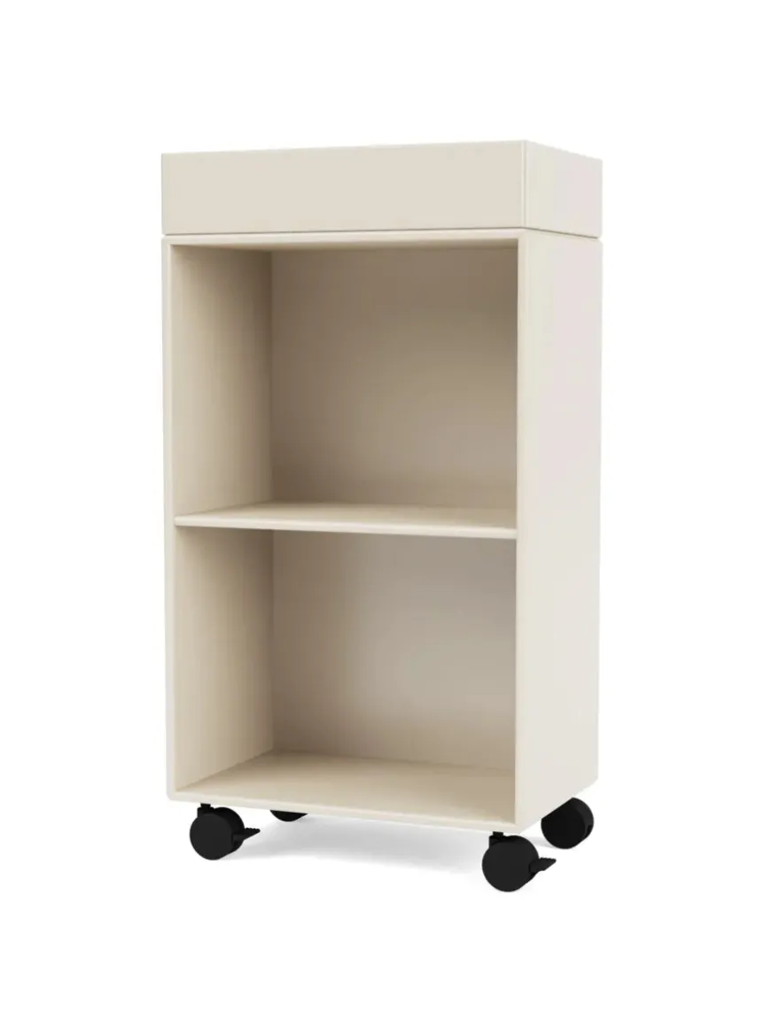 Preppy er en badeværelsesvogn og mobil opbevaring på hjul lavet af 12 mm vandafvisende MDF. Modulet har to rum og en bakke på toppen. Preppy er ideel til opbevaring af håndklæder, wellness- og skønhedsartikler – eller styling såsom planter. Preppy vognen er certificeret med det danske indeklimamærke og det officielle EU Ecolabel, hvilket gør den til et sikkert valg for dig, dine omgivelser og miljøet. Den kommer i Montanas poetiske farvepalet med 40 nuancer. Selections i vandafvisende MDF er uden pilothuller. Badeværelsesmodulerne er godkendt til badeværelser, men må ikke placeres nogen steder, hvor der opstår direkte kontakt med vand.